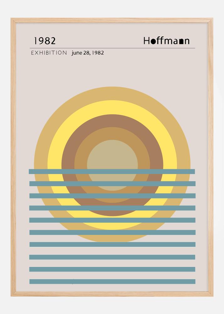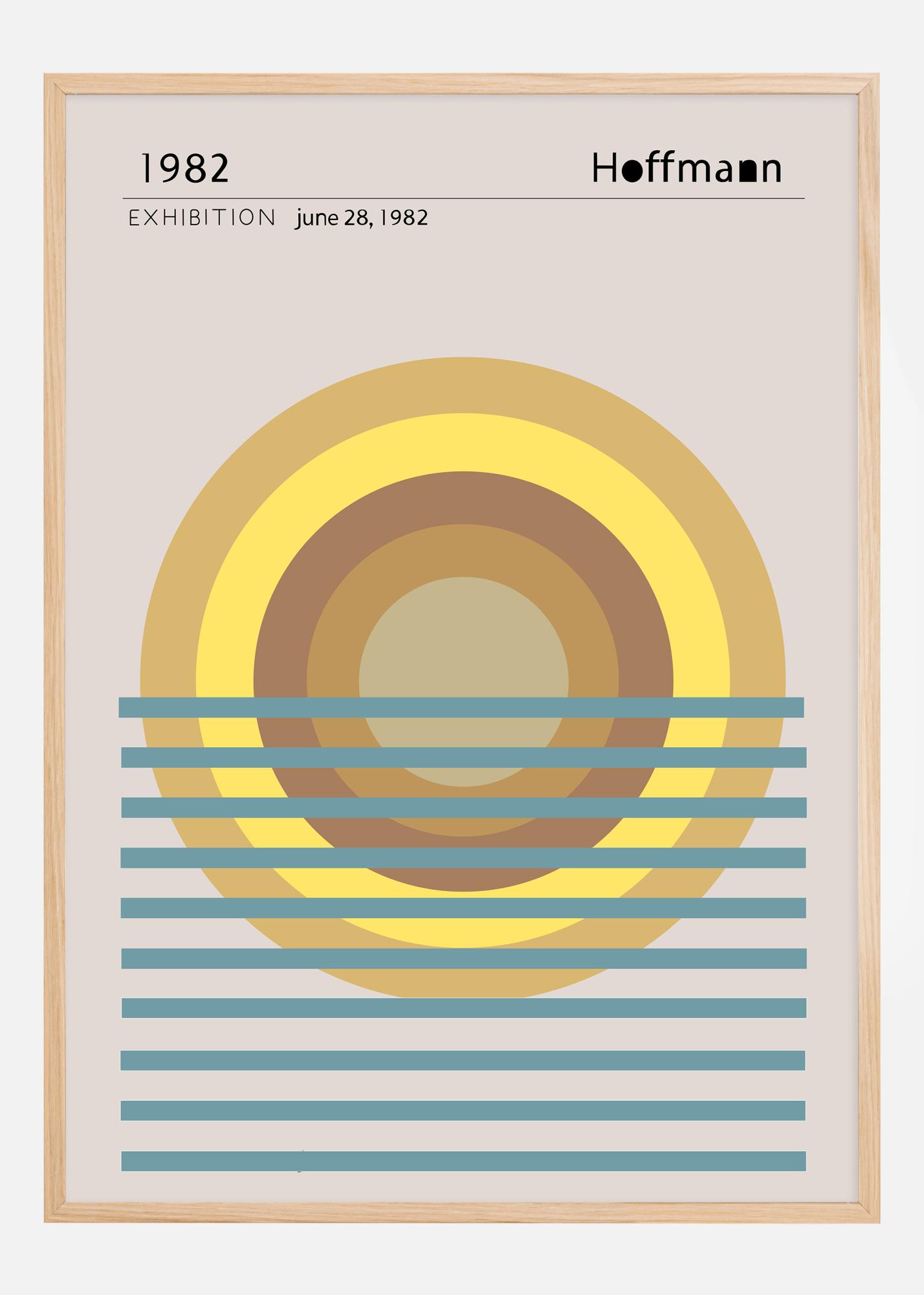 Αυτή η κομψή και εννοιολογική αφίσα είναι ένας φόρος τιμής στην έκθεση του Χόφμαν από το 1982. Δείχνει μια σειρά από αλληλεπικαλυπτόμενους κύκλους και γραμμές που δημιουργούν την ψευδαίσθηση ενός ηλιοβασιλέματος πάνω από το νερό. Η χρωματική παλέτα είναι ζεστή και φιλόξενη, με τόνους χρυσού, κίτρινου και καφέ που αντιπαρατίθενται με δροσερές μπλε αποχρώσεις, μεταφέροντας μια αίσθηση ισορροπίας μεταξύ ημέρας και νύχτας, ζέστης και κρύου.