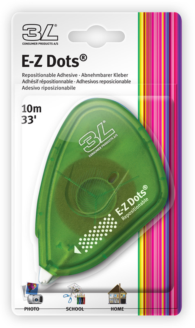 Μη μόνιμη φωτογραφική ταινία από την 3L. Η ταινία αποτελείται από μικρές αυτοκόλλητες κουκίδες που είναι μοβ. Μέσω του χρώματός τους είναι εύκολο να δείτε τις κουκίδες και να τις αφαιρέσετε όταν τελειώσετε. Ένα ρολό περιέχει 10 μέτρα ταινία με πλάτος 9 mm.