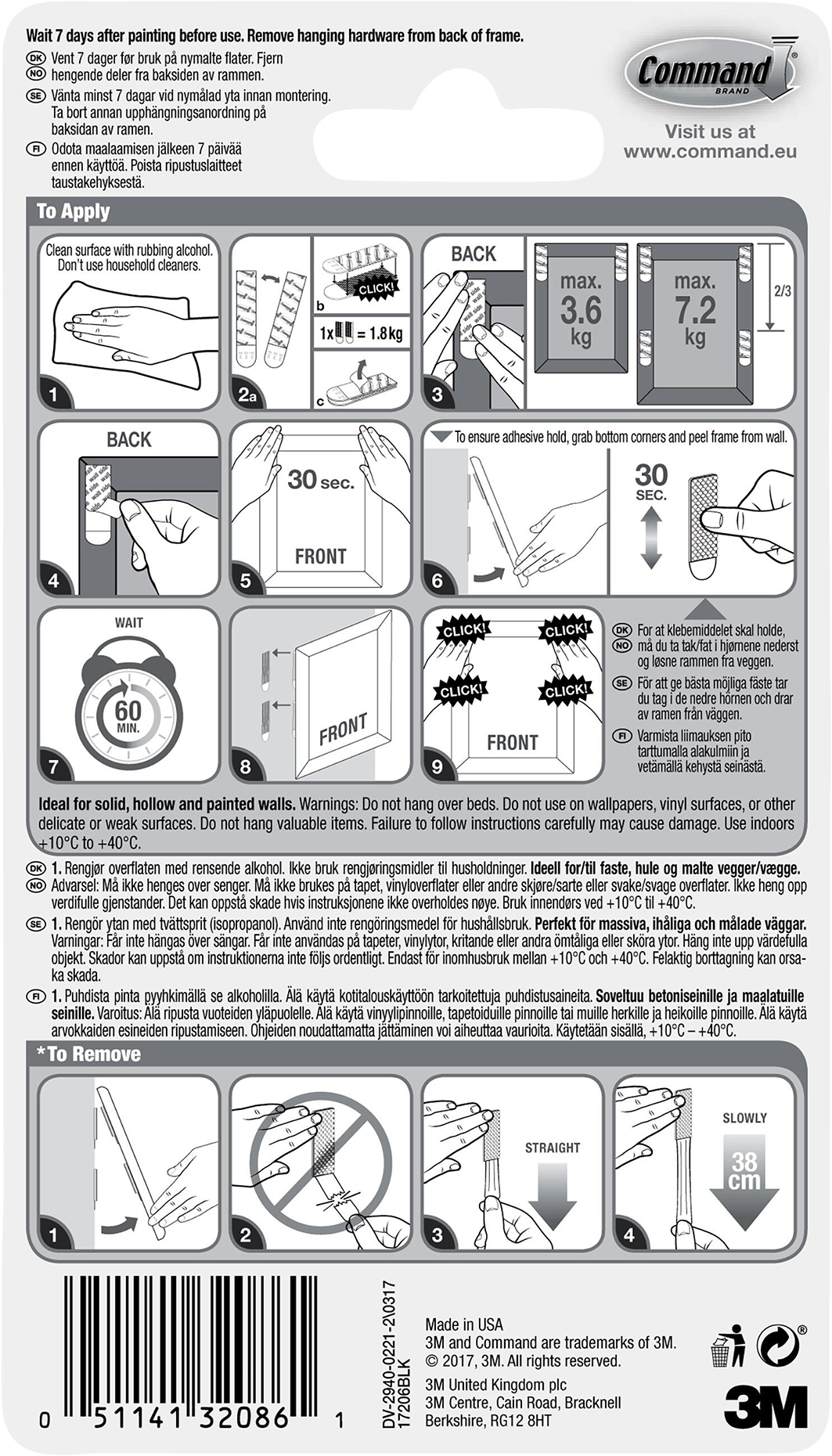 Με αυτές τις βάσεις πλαισίου από την Command μπορείτε εύκολα να τοποθετήσετε τις κορνίζες σας χωρίς να χρειάζεται να τρυπήσετε ή να καρφώσετε τρύπες στον τοίχο. Οι βάσεις είναι αυτοκόλλητες και δεν αφήνουν σημάδια κατά την αφαίρεση τους, χάρη στην καινοτόμο τεχνολογία stretch απελευθέρωσης 3M. Είναι ιδανικές για χρήση σε περισσότερες λείες επιφάνειες, όπως βαμμένους τοίχους, πλακάκια, μέταλλο και ξύλο. Οι ταινίες στήριξης δεν πρέπει να χρησιμοποιούνται σε ταπετσαρίες, βινύλιο ή άλλες ευαίσθητες επιφάνειες.