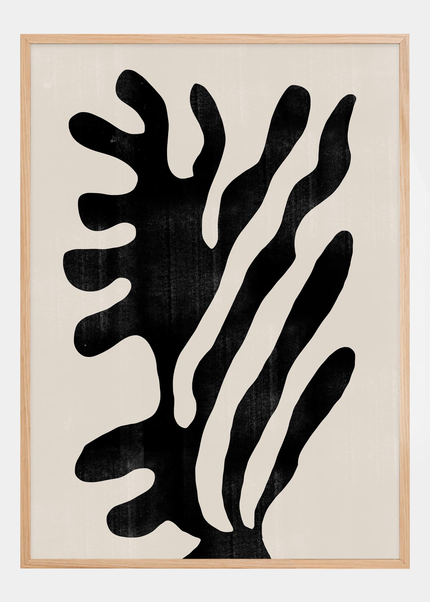 Με μια ισχυρή και αφηρημένη έκφραση, αυτή η αφίσα καλεί σε ερμηνεία της ζωτικής δύναμης της φύσης. Οι τολμηρές μαύρες μορφές, που θυμίζουν φύλλο φυτού ή εξωτικό λουλούδι, αντιπαραβάλλονται με το κρεμ χρώμα του φόντου, δημιουργώντας μια δυναμική και δραματική επίδραση. Αυτό το έργο τέχνης συλλαμβάνει την οργανική ομορφιά της φύσης μέσα από μια μινιμαλιστική αλλά τολμηρή γλώσσα.