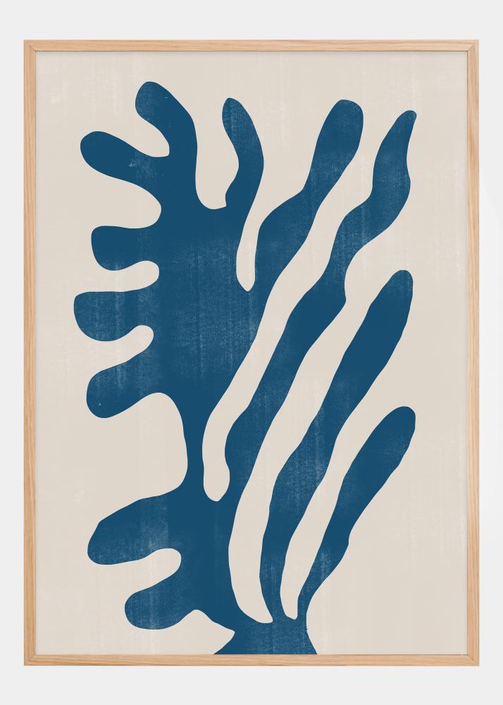 Αυτή η τολμηρή και ζωηρή αφίσα αιχμαλωτίζει την ουσία ενός αφηρημένου φυλλώματος με τις κυματιστές μπλε γραμμές της σε κρεμ φόντο. Το στυλιζαρισμένο μοτίβο θυμίζει υποβρύχια βλάστηση ή φτερά που χορεύουν στον άνεμο, προσφέροντας μια αίσθηση ελευθερίας και φύσης. Αυτό το έργο τέχνης συνδυάζει οργανική ομορφιά με μια μοντέρνα αισθητική γραφικού σχεδιασμού.