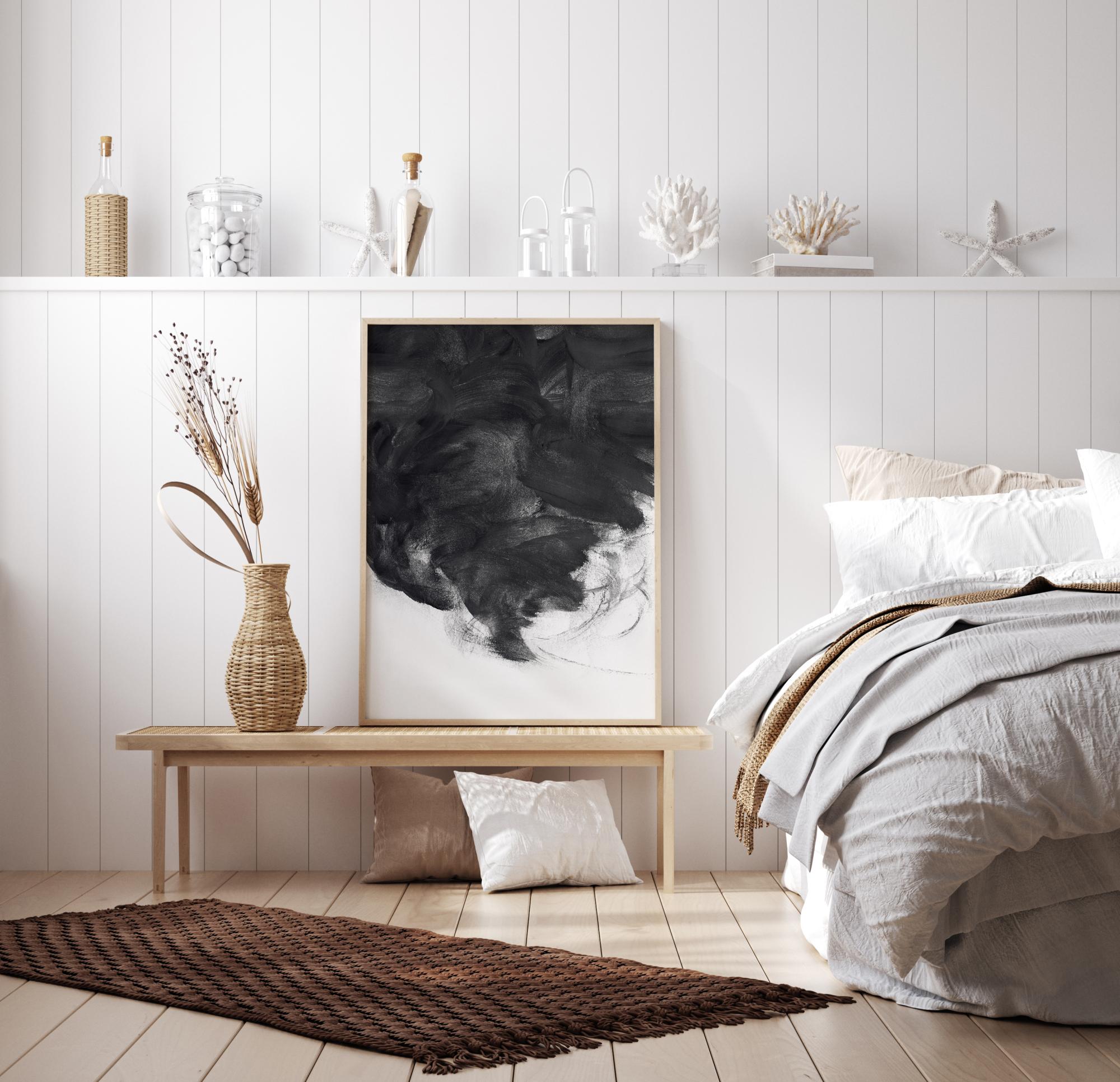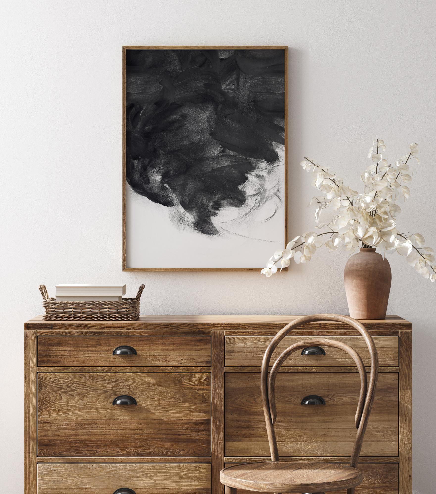Μια αφηρημένη αφίσα από μια μαύρη σπείρα. Αυτό το φανταστικό ασπρόμαυρο έργο οδηγεί το βλέμμα από την κορυφή προς το κέντρο μέσω της μαύρης σπείρας. Εκεί όπου το μαύρο συναντά το λευκό, μπορείτε να φανταστείτε μια σπηλιά, μια καταιγίδα, μια θύελλα ή ένα σύννεφο σε αυτή την αφίσα που είναι γεμάτη από δυναμική. Τοποθετήστε την σε έναν ανοιχτόχρωμο τοίχο για μια δραματική και επική αίσθηση.