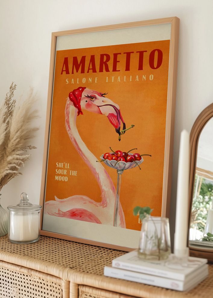 Amaretto Flamingo Art Deco Italian Cafe Travel Art Αφίσα