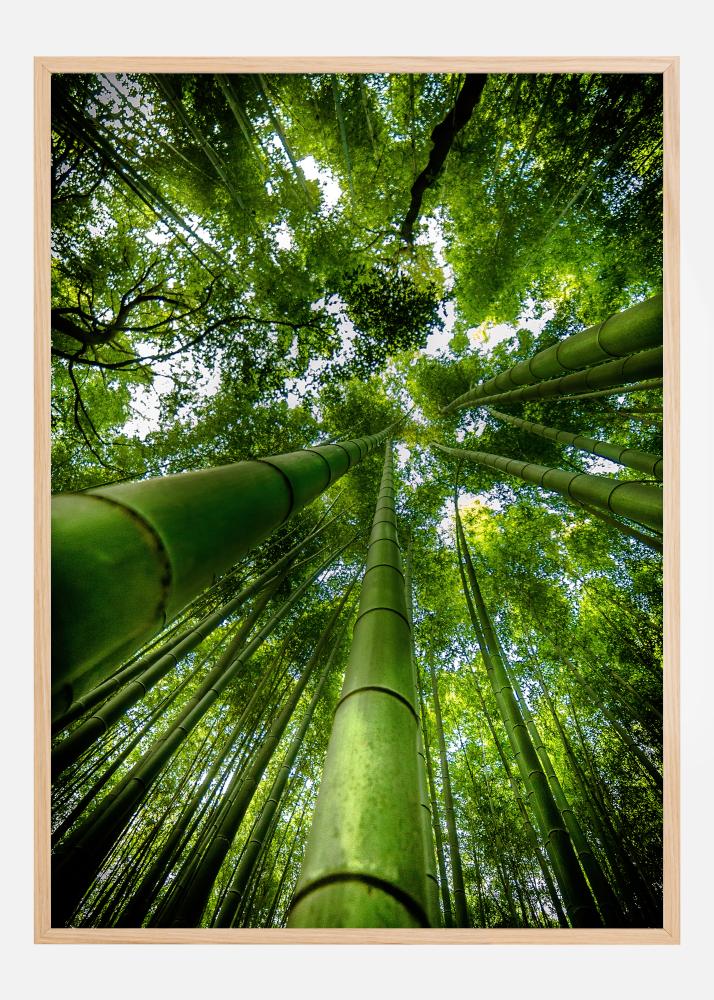 Μια αφίσα φύσης με πράσινα φυτά μπαμπού. Κοιτάξτε προς τον ουρανό όταν αυτή η εικόνα περιβάλλεται από χοντρούς μίσχους μπαμπού που οδηγούν προς μια πράσινη οροφή από φυλλώματα ψηλά στον ουρανό. Φανταστείτε ότι ξαπλώνετε σε αυτόν τον ήσυχο κόσμο της ζούγκλας όταν τοποθετείτε αυτή την εικόνα στο σπίτι σας.