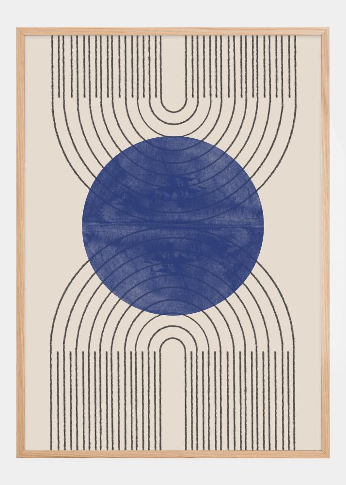 Δημιουργήστε μια ήρεμη και συγκεντρωμένη ατμόσφαιρα στο δωμάτιό σας με την αφηρημένη μας αφίσα που συνδυάζει απαλές γραμμές και τολμηρά χρώματα. Ο μεγάλος μπλε κύκλος στο κέντρο προσφέρει μια αισθητή αίσθηση ηρεμίας και λειτουργεί σαν μια πύλη σε έναν άλλο κόσμο, πλαισιωμένη από μια σειρά ομόκεντρων τόξων που δημιουργούν μια αρχιτεκτονική αίσθηση. Αυτό το έργο τέχνης συνδυάζει την παράδοση με τη νεωτερικότητα και προσφέρει μια ειρηνική ισορροπία στο περιβάλλον σας.