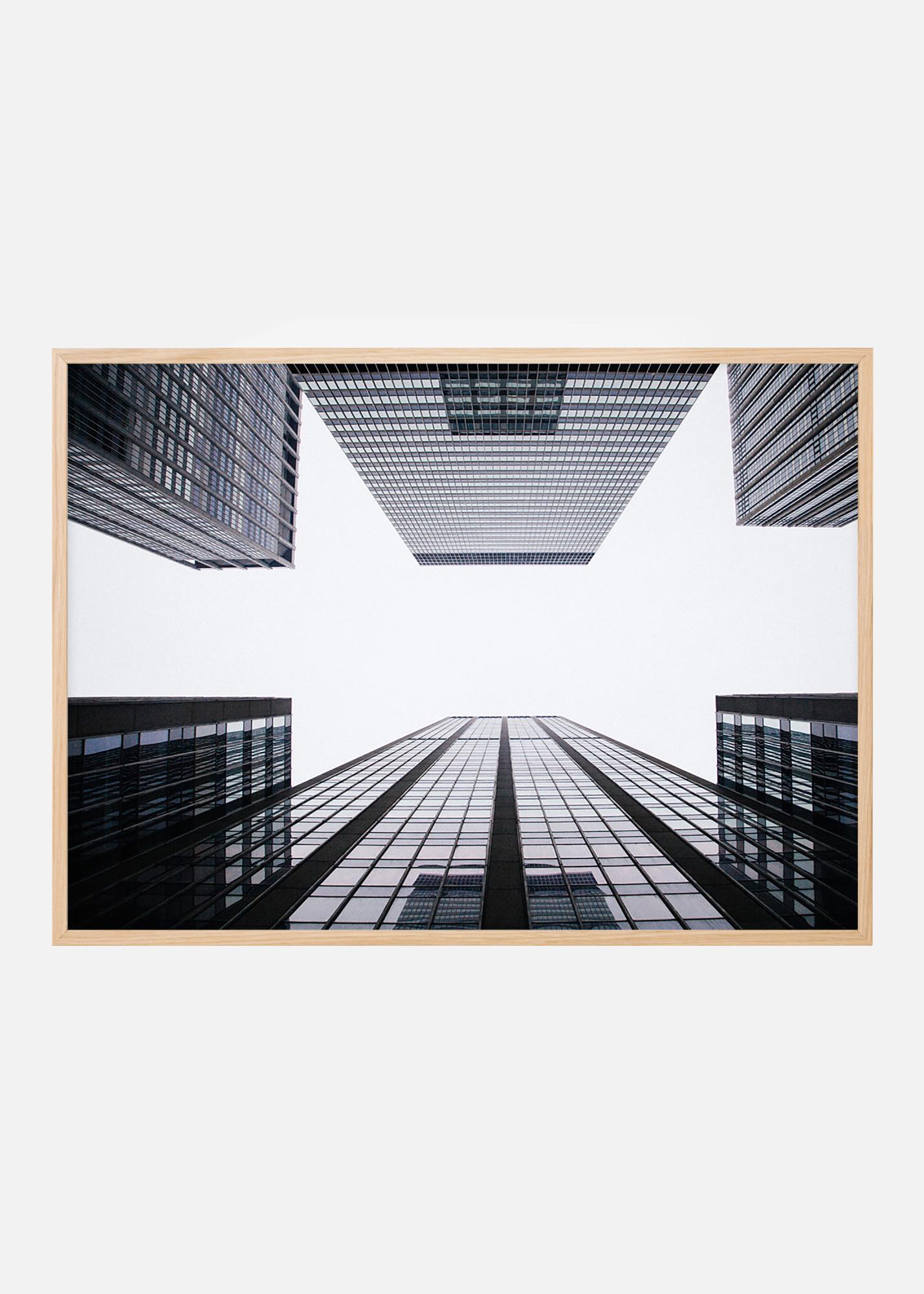 Αφίσα αρχιτεκτονικής με αναπτυσσόμενους ουρανοξύστες κάτω από έναν λευκό σαν σύννεφο ουρανό. Κομψή εικόνα με σκοτεινά κτίρια πάνω σε λευκό φόντο, με τις αντανακλάσεις του ουρανού στα τζάμια. Ιδανικό δώρο για εκείνον που αγαπά τα γραφικά πορτραίτα κτιρίων. Το αποτύπωμα ταιριάζει όμορφα σε μια μαύρη κορνίζα που ενισχύει τη σκοτεινή απόχρωση της εικόνας και φαίνεται όμορφο σε συνδυασμό με άλλες φωτογραφίες αρχιτεκτονικής.