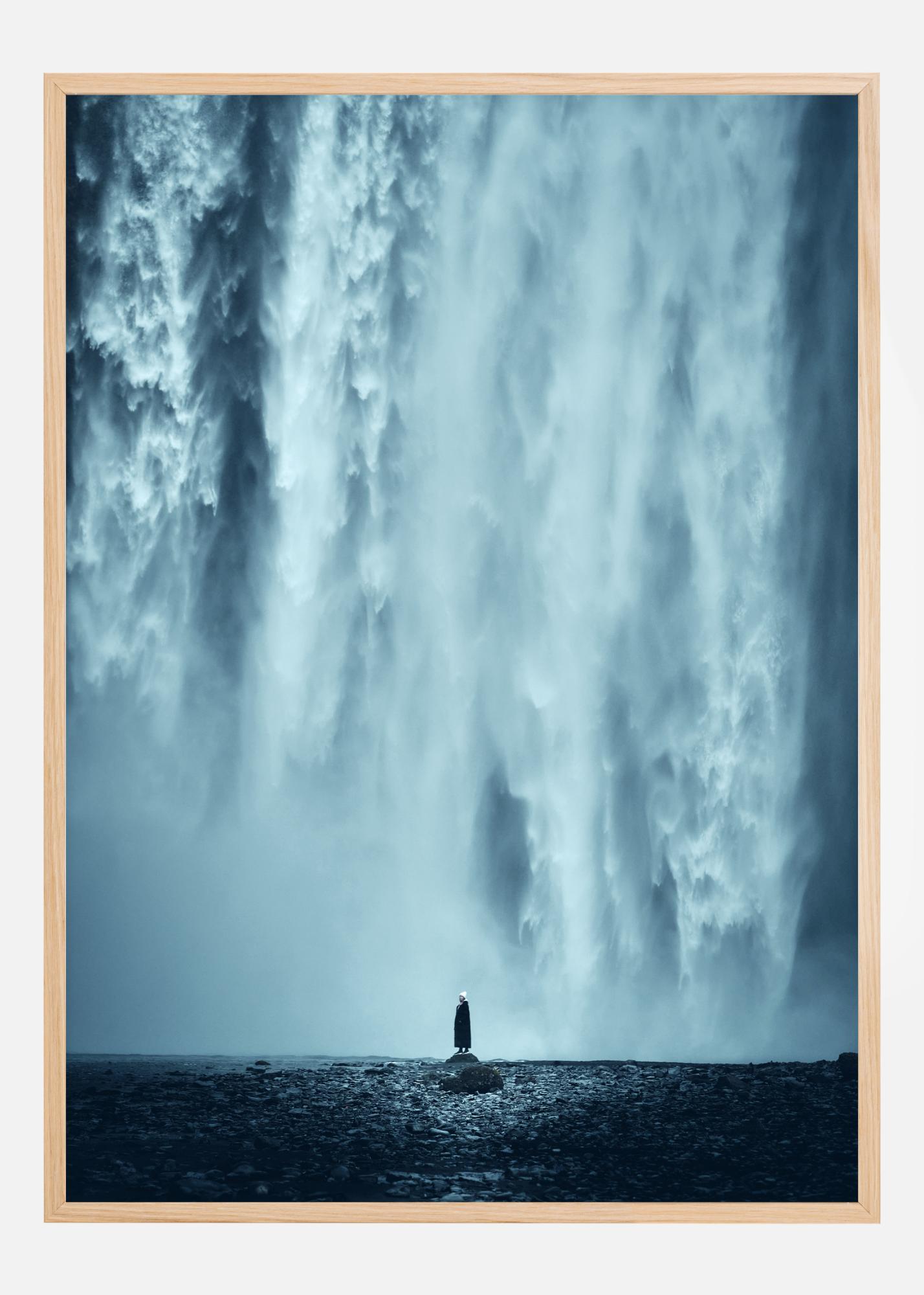 Μια επική αφίσα που παρουσιάζει την εκπληκτική δύναμη της φύσης μέσω ενός καταρράκτη. Το δράμα ολοκληρώνεται με μια μικρή μαύρη φιγούρα στο κέντρο της εικόνας να κοιτάζει το ορμητικό νερό. Ο μπλε και λευκός καταρράκτης προκαλεί ένα αίσθημα θαυμασμού σε αυτή τη μεγαλοπρεπή εικόνα.