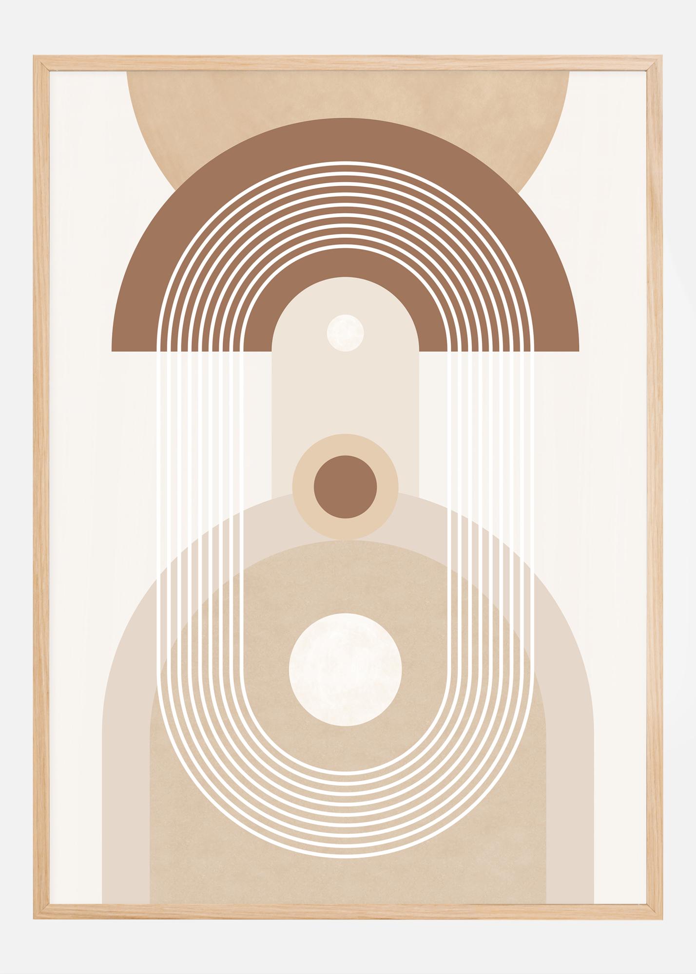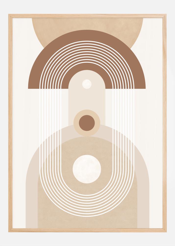 Αυτή η εκλεπτυσμένη και κομψή αφίσα συνεχίζει τη συλλογή μας από τέχνη mid-century modern. Η αφηρημένη σύνθεση, που παίζει με τη μορφή και τον αρνητικό χώρο, χρησιμοποιεί ένα περιορισμένο φάσμα χρωμάτων από μπεζ και καφέ τόνους για να δημιουργήσει μια αίσθηση βάθους και κίνησης. Με τις γεωμετρικές της φιγούρες και τις επικαλυπτόμενες γραμμές, αυτή η αφίσα προσφέρει μια υποτονική πολυπλοκότητα που μπορεί να εκτιμηθεί από όλες τις γωνίες.