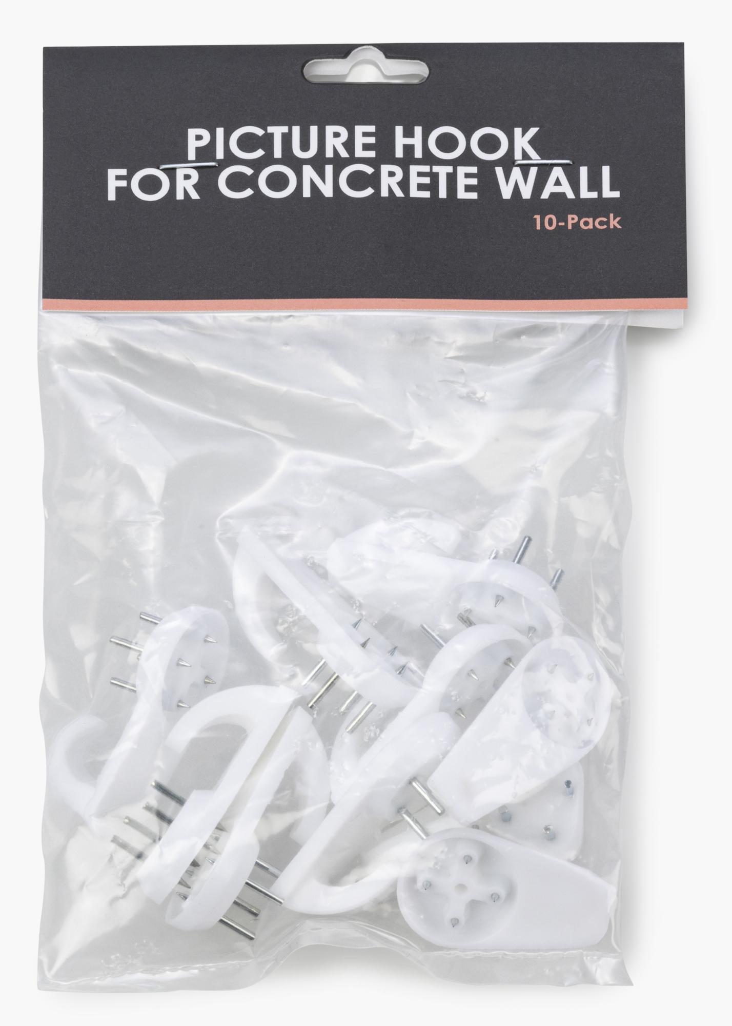 Μεγάλο άγκιστρο πλαισίου σε συσκευασία των 10 για τοίχους από σκυρόδεμα, το οποίο σας επιτρέπει να αποφύγετε το τρύπημα και την ταλαιπωρία με βύσματα. Κατάλληλο για ελαφρύτερους και μικρότερους πίνακες.