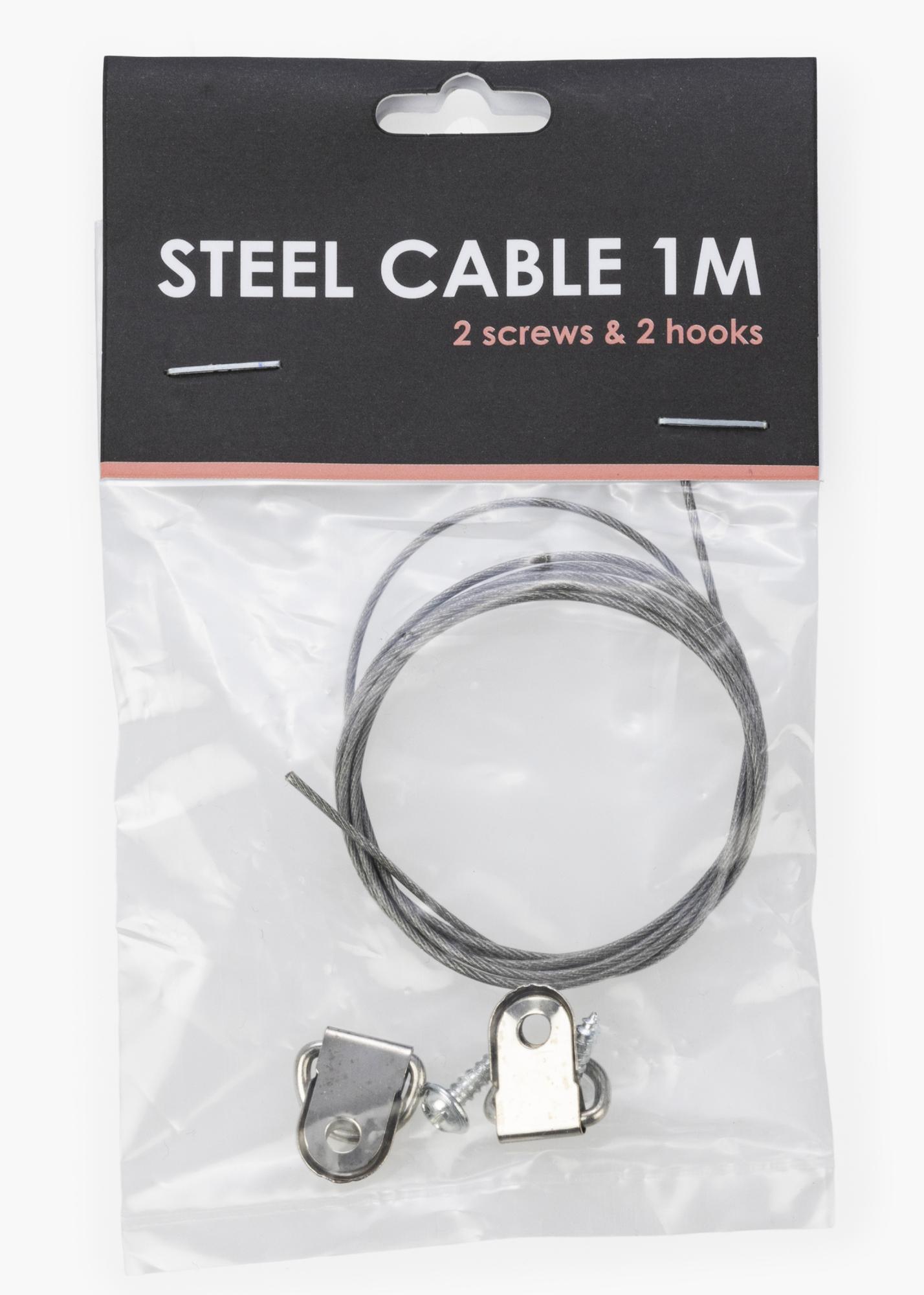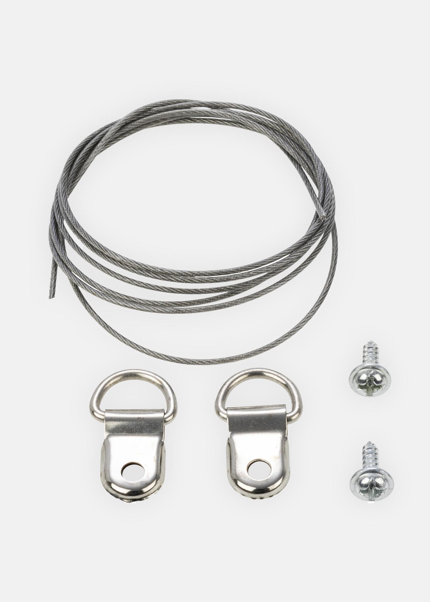 Με αυτό το πλήρες κιτ έχετε όλα όσα χρειάζεστε για να τοποθετήσετε ένα χαλύβδινο σύρμα στον πίνακα σας: 1 μέτρο μακριά χαλύβδινο σύρμα, 2 βίδες και 2 θηλιές/γάντζους. Το χαλύβδινο σύρμα είναι γαλβανισμένο και ανθεκτικό, αλλά μόνο 0,7 χιλιοστά παχύ, γεγονός που το καθιστά εύκολο στη χρήση αφού μπορεί να λυγίσει και να στριφτεί κατόπιν επιθυμίας.