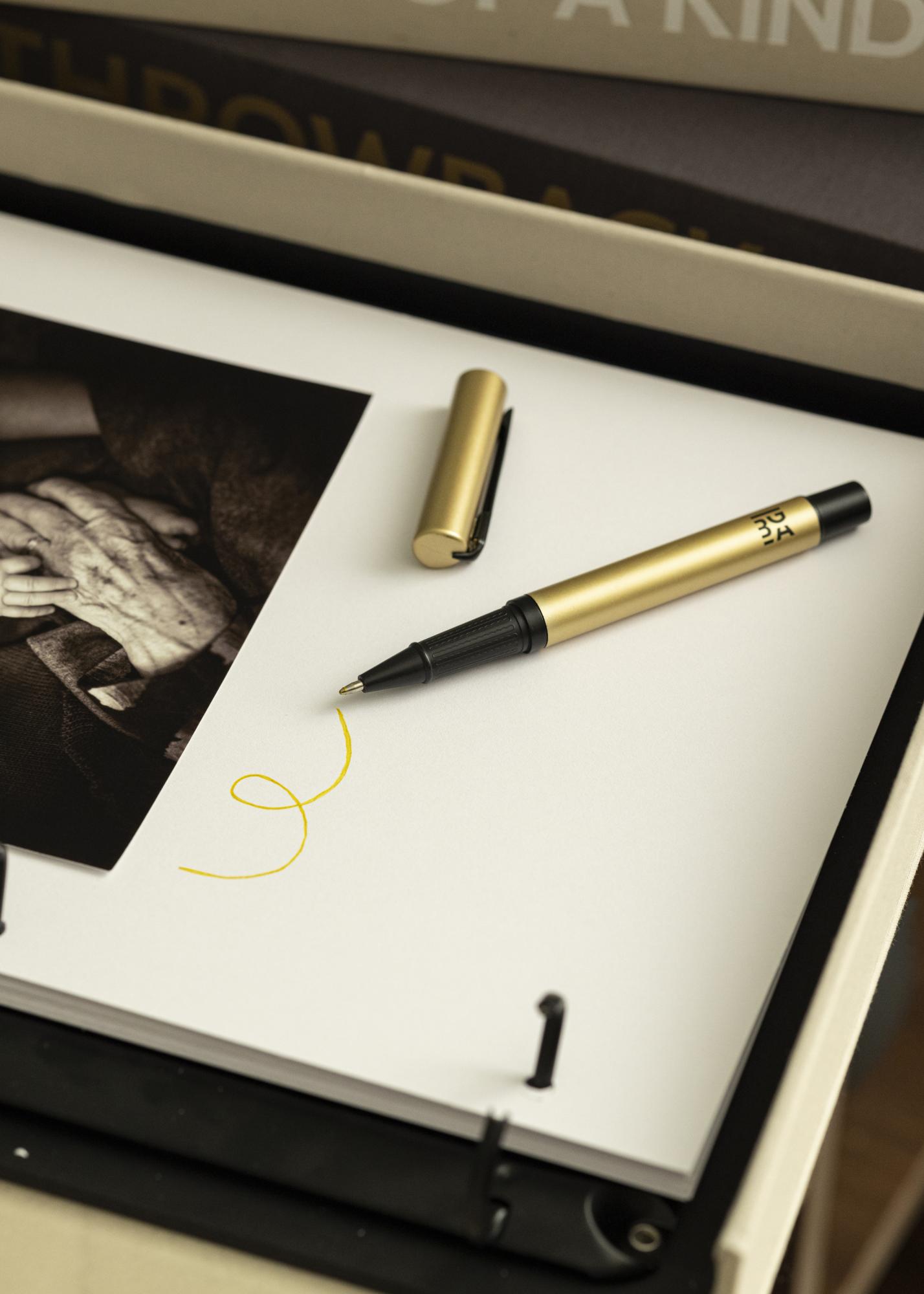 Στυλό άλμπουμ σε χρυσό μεταλλικό χρώμα που λειτουργεί εξαιρετικά για χρήση σε γυαλιστερές επιφάνειες όπως φωτογραφίες. Το στυλό έχει πλάτος μύτης 1 χιλιοστό.