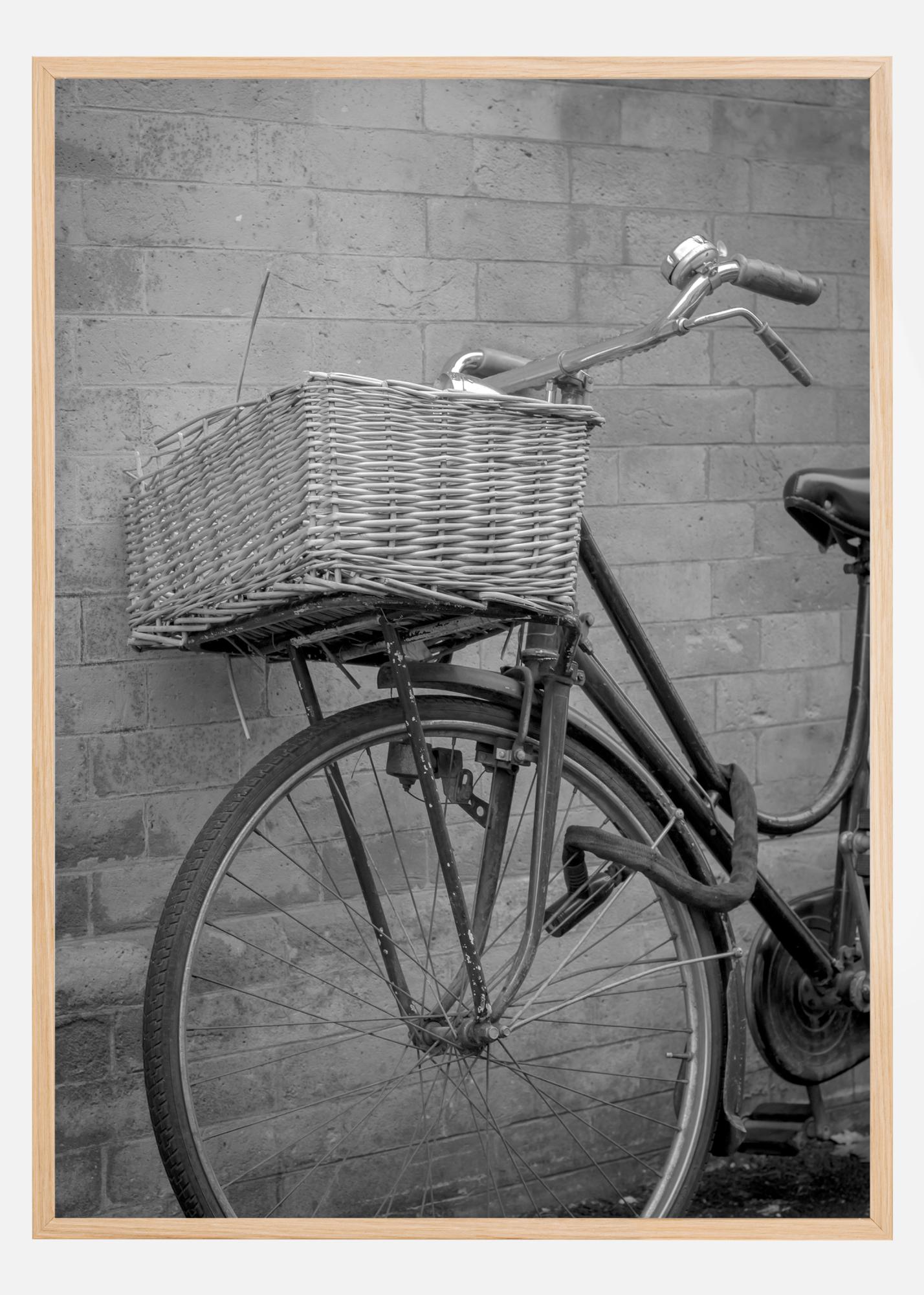 Μια αφίσα νεκρής φύσης με ένα ποδήλατο που είναι ακουμπισμένο σε έναν τοίχο από τούβλα. Το καλάθι του ποδηλάτου είναι στο επίκεντρο και το αντιθετικό μαύρο πλαίσιο και η κλειδαριά του ποδηλάτου καθοδηγούν το βλέμμα γύρω από την αφίσα. Κρεμάστε αυτήν την απλή αλλά κομψή εικόνα σε έναν φωτεινό τοίχο για μια εκλεπτυσμένη επίδραση.