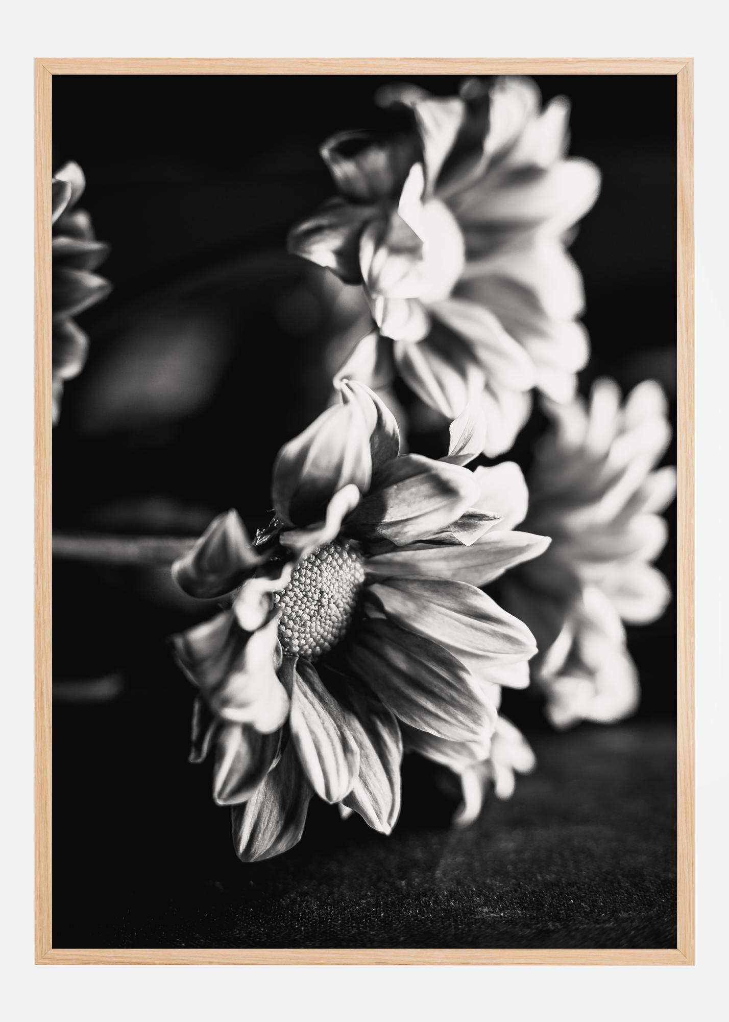 Αυτή η αφίσα απεικονίζει μια διάταξη λουλουδιών σε ασπρόμαυρο, όπου οι σκιές και το φως συνεργάζονται για να αναδείξουν τα λεπτά περιγράμματα και την υφή κάθε πετάλου. Η εστίαση της εικόνας στην αντίθεση μεταξύ του σκούρου και του φωτεινού αιχμαλωτίζει την ομορφιά των λουλουδιών με έναν τρόπο που φέρνει μια νέα εκτίμηση για το σχήμα και τη δομή τους. Αυτή η αφίσα είναι μια εκλεπτυσμένη και καλλιτεχνική ερμηνεία των θαυμάτων της φύσης, ιδανική για την δημιουργία μιας αίσθησης ηρεμίας και ομορφιάς σε οποιοδήποτε χώρο.