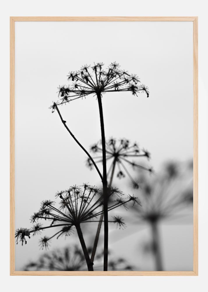 Μια απλή αφίσα με φυτά από την οικογένεια των σκιαδοφόρων σε λευκό φόντο. Οι μαύρες σιλουέτες των στελεχών και κεφαλών σπόρων αυτών των φυτών έρχονται σε αντίθεση με το απλό λευκό φόντο. Κρεμάστε αυτή την συναρπαστική εικόνα σε έναν χρωματιστό τοίχο για να κάνουν τα λεπτομέρειες των λουλουδιών να ξεχωρίζουν.