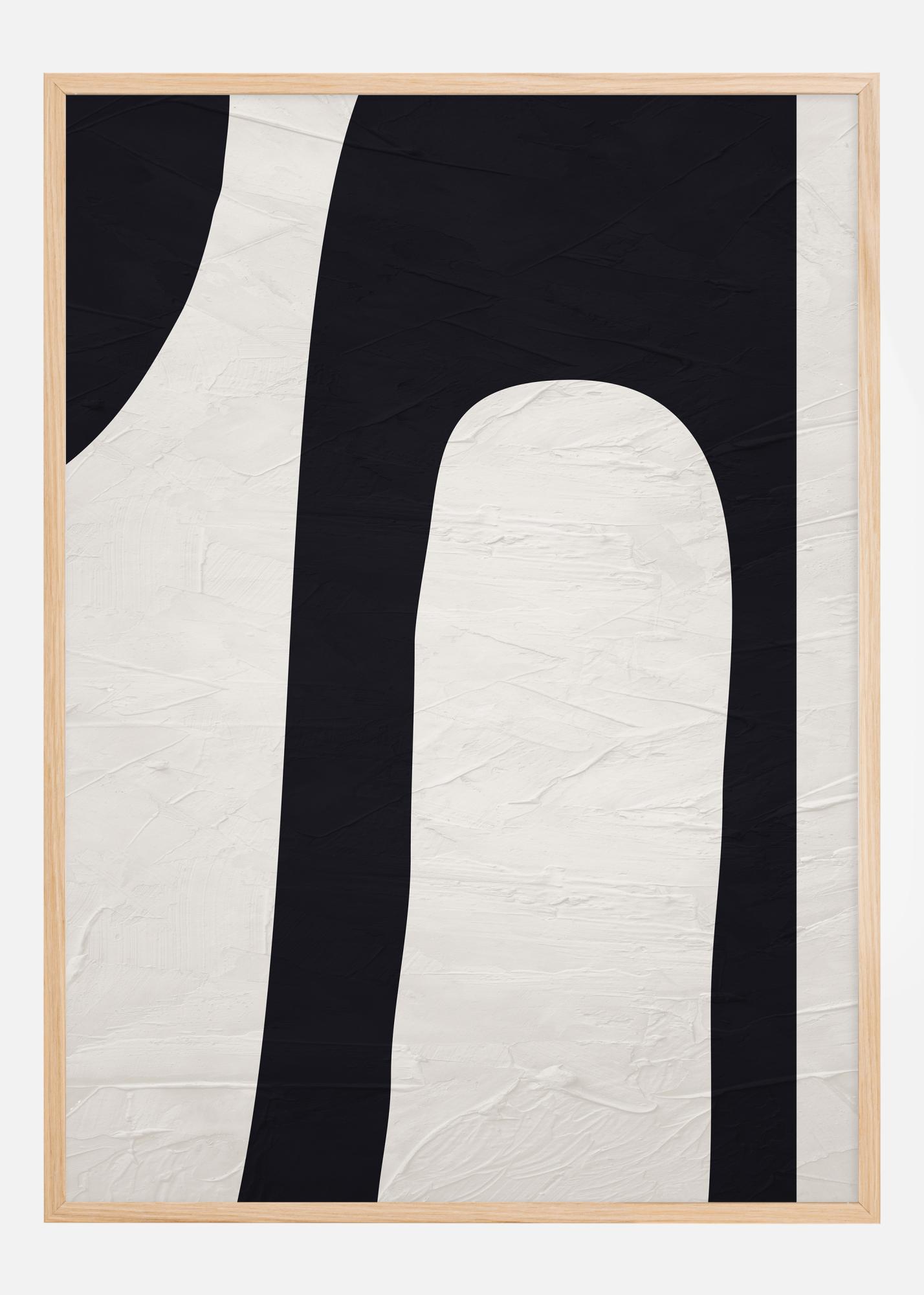 Αυτή η καλλιτεχνική αφίσα παρουσιάζει ένα παιχνίδι αφηρημένων μαύρων γραμμών σε μια κρεμ λευκή φόντο, δημιουργώντας μια ισχυρή και οπτικά διεγερτική αντίθεση. Ο σχεδιασμός παίζει με τον χώρο και την προοπτική χρησιμοποιώντας το σχήμα των μαύρων γραμμών για να υπονοήσει διάσταση και βάθος. Είναι μια μινιμαλιστική αλλά ισχυρή εικόνα που ισορροπεί μεταξύ σύγχρονης τέχνης και γραφικού σχεδιασμού.