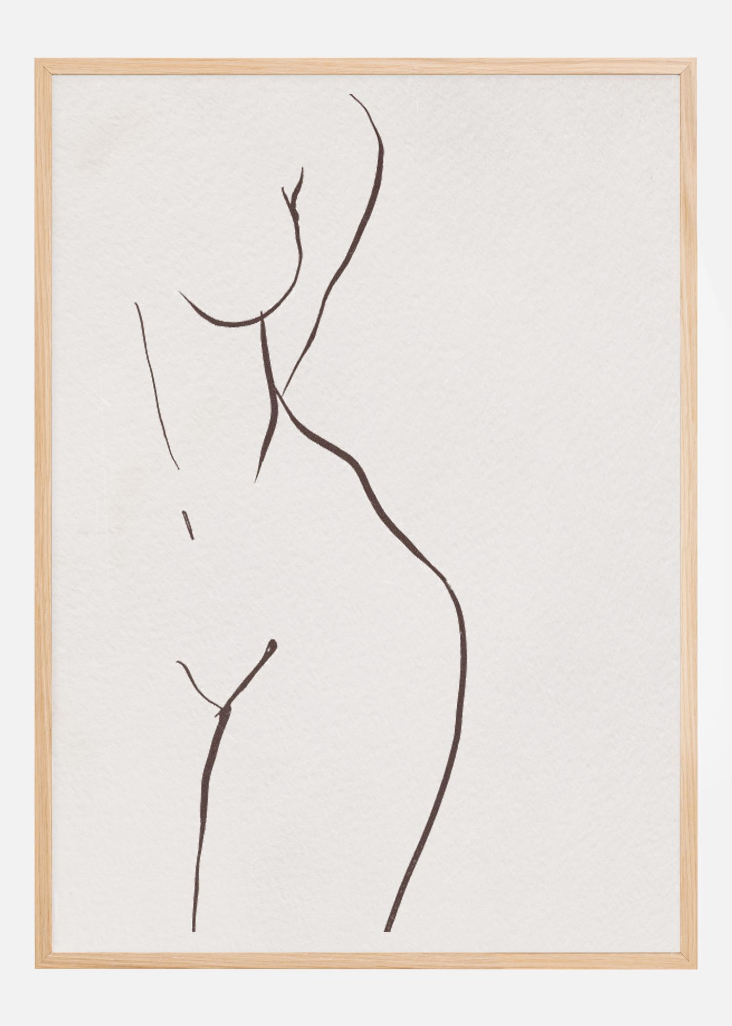 Μια αφίσα με τους γοφούς μιας γυναίκας. Έντονα μαύρα περιγράμματα σε λευκό φόντο σχεδιάζουν την πλευρά μιας γυναίκας από τον γοφό μέχρι τον ώμο. Απαλές καμπύλες οδηγούν το βλέμμα γύρω από τις μορφές της σε αυτήν τη ρευστή εικόνα. Κρεμάστε τη στον τοίχο σας για μια καλλιτεχνική αίσθηση.