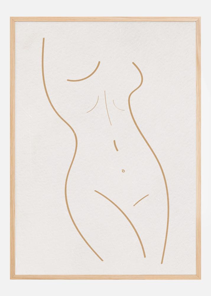 Μια αφίσα με μια γυναίκα σε καφέ γραμμές. Ισχυρές, τολμηρές καφέ γραμμές σκιαγραφούν τα πόδια, τη μέση και το στήθος της γυναίκας. Οι γραμμές είναι ομαλές και ανερχόμενες σε αυτό το κομψό σχέδιο. Κρεμάστε αυτό το έργο σε έναν απλό λευκό τοίχο για μια αίσθηση γκαλερί.