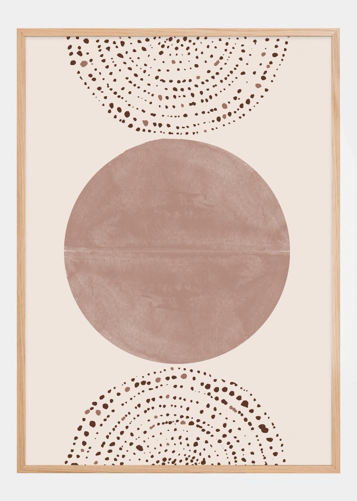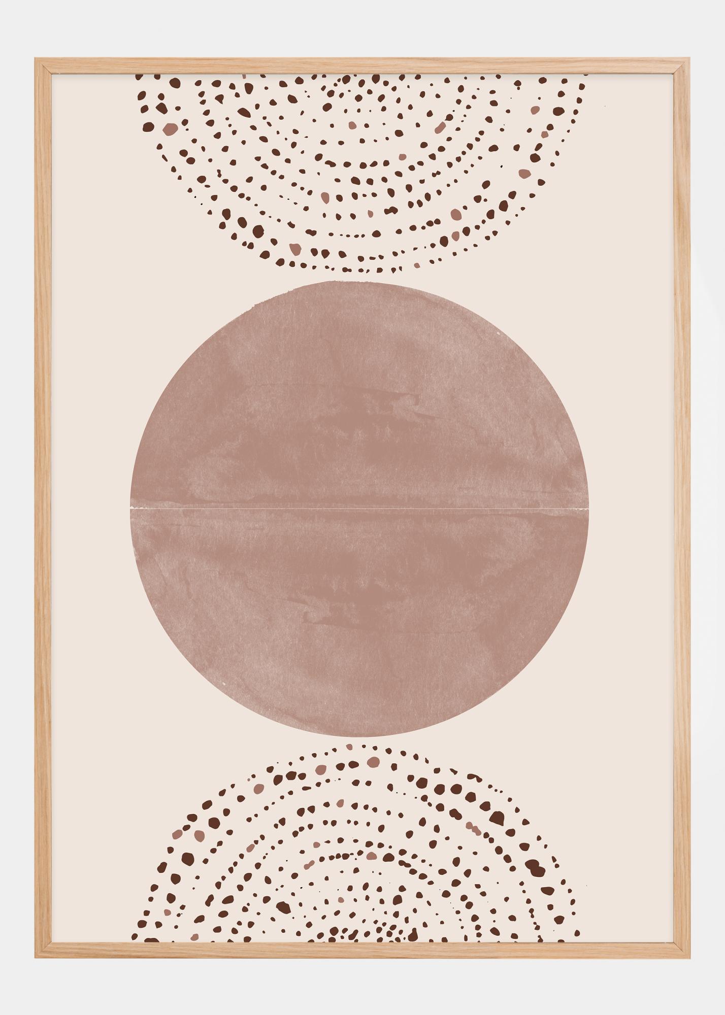 Αυτή η εκλεπτυσμένη και καταπραϋντική αφίσα αναδεικνύει έναν μεγάλο, απαλό κύκλο σε απόχρωση τερακότας ως κέντρο σε μια σύνθεση από λεπτές, διάσπαρτες κουκκίδες που σχηματίζουν αιωρούμενα ημικύκλια πάνω και κάτω. Αυτό το μοτίβο είναι εμπνευσμένο από τον μποέμ σχεδιασμό και προσφέρει μια χαλαρή, γήινη αίσθηση ενώ παράλληλα προσθέτει μια μοντέρνα πινελιά στο δωμάτιο που κοσμεί.