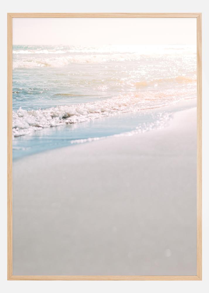 Μια αφίσα κοντινού πλάνου με κύματα που χτυπούν στην ομαλή αμμουδιά ενώ ένα λευκό φως που αστράφτει στην επιφάνεια του νερού ένα πρώιμο πρωί προσθέτει μια μαγική αίσθηση. Απαλοί μπλε, ροζ και κίτρινοι τόνοι κάνουν αυτό το έργο την ιδανική προσθήκη στην κρεβατοκάμαρα.