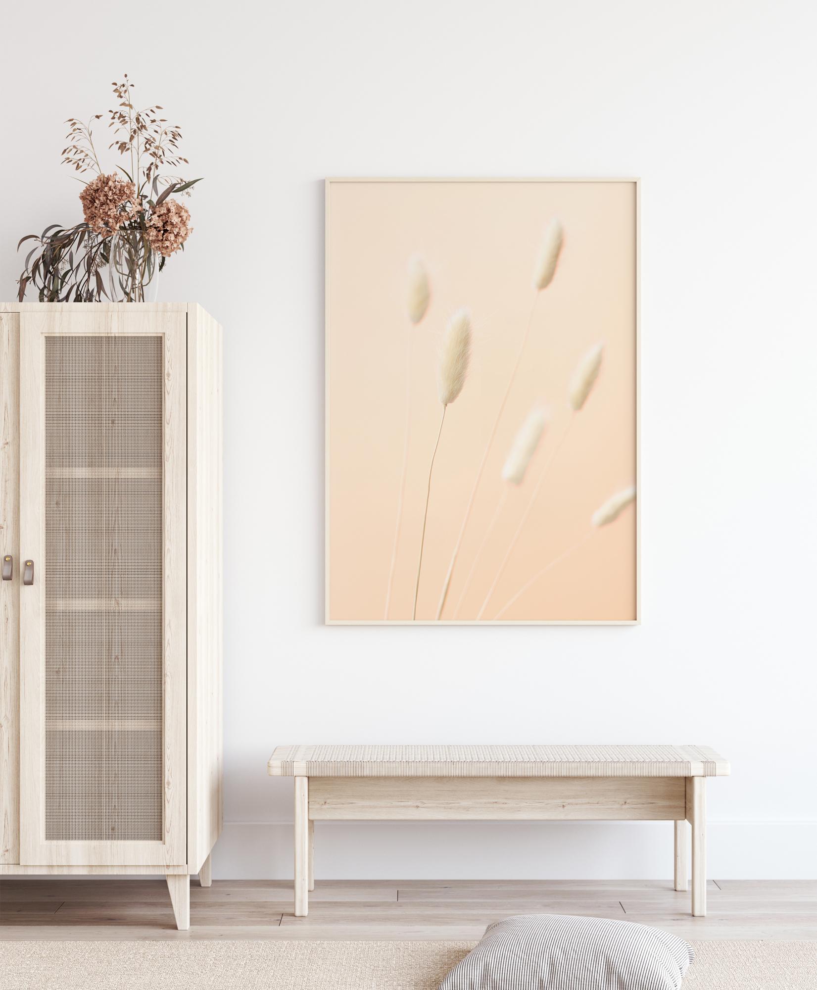 Μια απλή αφίσα λουλουδιών με λίγη ουρά λαγού σε μια κανάτα. Τα ελαφριά, αέρινα στελέχη ζωγραφίζουν σχεδόν τον τοίχο πίσω. Αυτά τα διακριτικά παστέλ χρώματα λειτουργούν τέλεια μαζί με άλλα χρώματα ή ακόμα και με έναν εντελώς λευκό τοίχο.