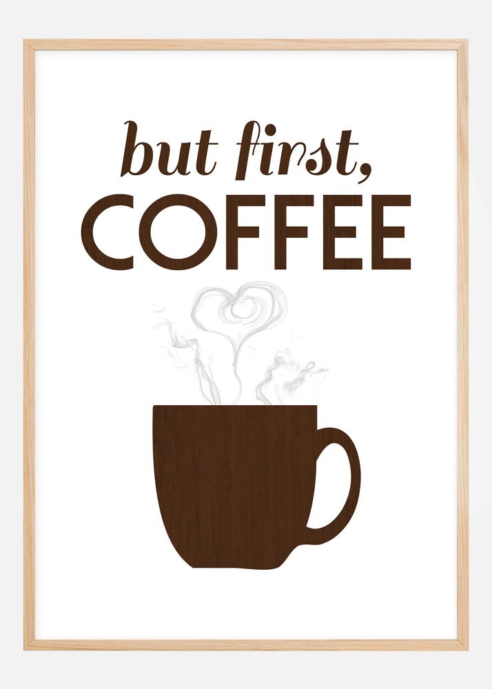Αφίσα με την φτερωτή έκφραση -Αλλά πρώτα, καφές. Και σίγουρα είναι έτσι ότι όλα γίνονται καλύτερα με ένα φλιτζάνι καφέ πρώτα; Η αφίσα με ένα σχέδιο που έχει αίσθηση ξύλου είναι το τέλειο δώρο για εκείνον που δεν μπορεί να ζήσει χωρίς την κούπα του καφέ το πρωί. Ταιριάζει επίσης εξαιρετικά στον χώρο εργασίας όπου θέλει κανείς να ξεκαθαρίσει τη σειρά προτεραιότητας. Συμπληρώστε την αφίσα με μια κορνίζα που ταιριάζει με την υπόλοιπη διακόσμηση ή επιλέξτε μια κορνίζα από σκούρο ξύλο για να αναδείξετε την αίσθηση του ξύλου στο μοτίβο.