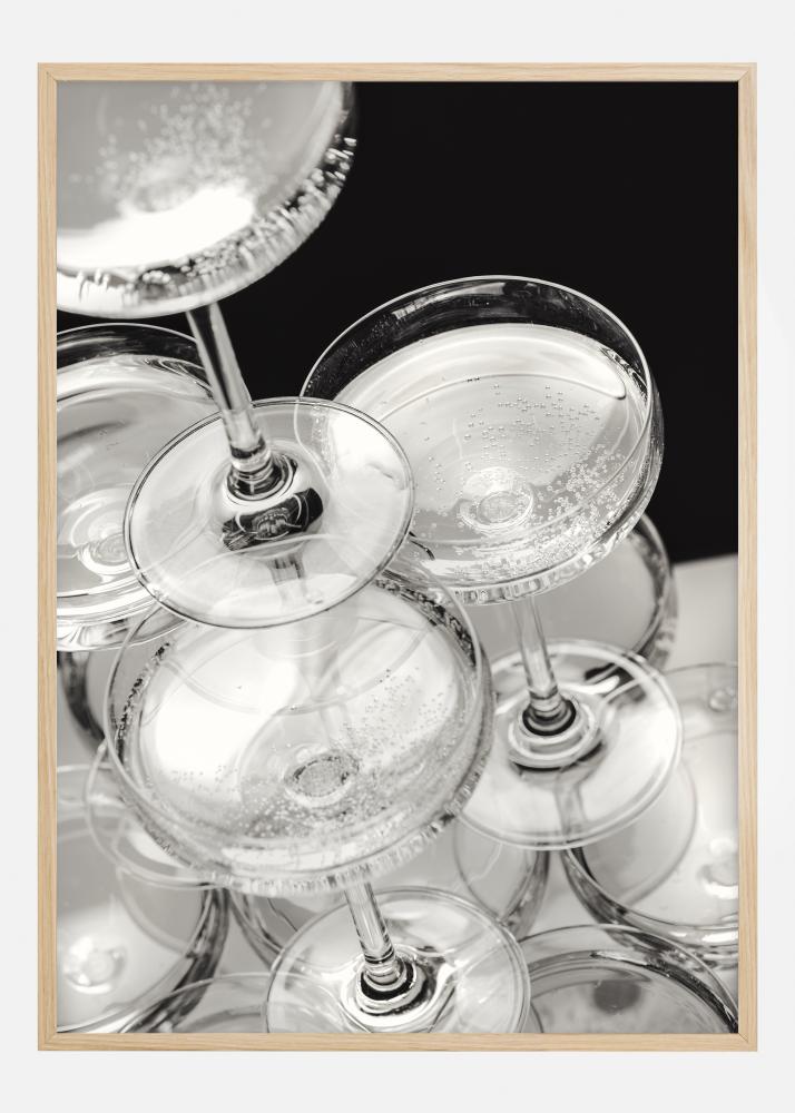 Αυτή η κομψή και εκλεπτυσμένη αφίσα αποτυπώνει τη ζωηρή γοητεία μιας κρήνης σαμπάνιας. Τα διάφανα ποτήρια, γεμάτα με αφρώδη σαμπάνια, είναι όμορφα τοποθετημένα σε έναν εντυπωσιακό σχηματισμό. Η λεπτομέρεια στις φυσαλίδες και οι αντανακλάσεις του φωτός στο γυαλί δίνουν ζωή στην εικόνα και δημιουργούν μια ατμόσφαιρα γιορτής και χαράς.