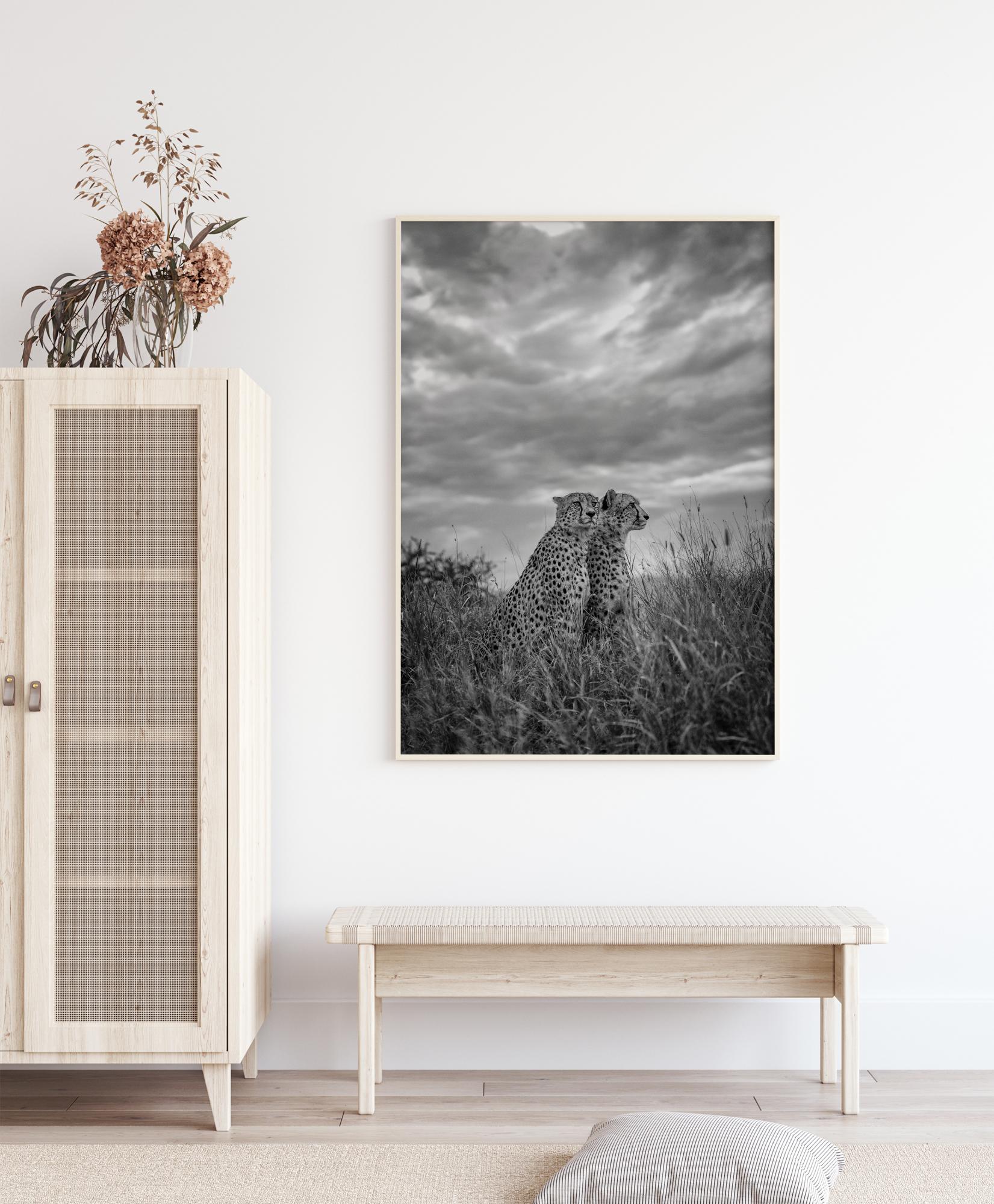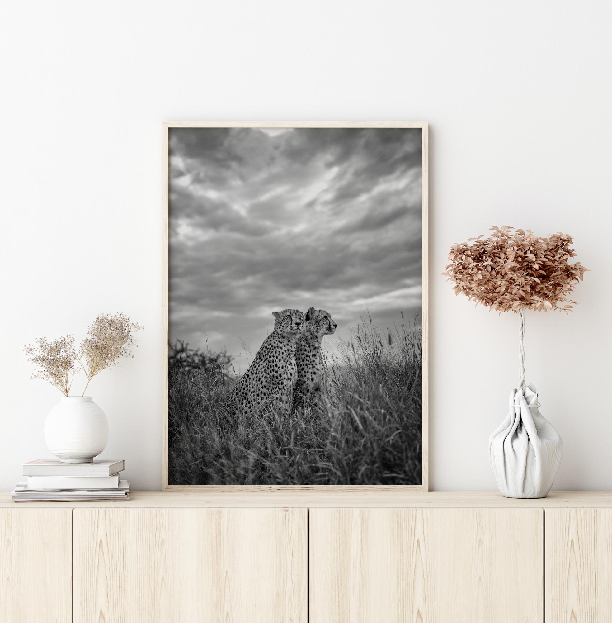 Μια αφίσα φύσης με δύο γατόπαρδους που κοιτάζουν τις αφρικανικές πεδιάδες. Ο συννεφιασμένος ουρανός έρχεται σε αντίθεση με τις υπέροχες κηλίδες πάνω σε αυτά τα ζώα. Με αυτήν την αφίσα, μπορείτε να φέρετε τη μεγαλοπρέπεια της φύσης στο σπίτι σας.
