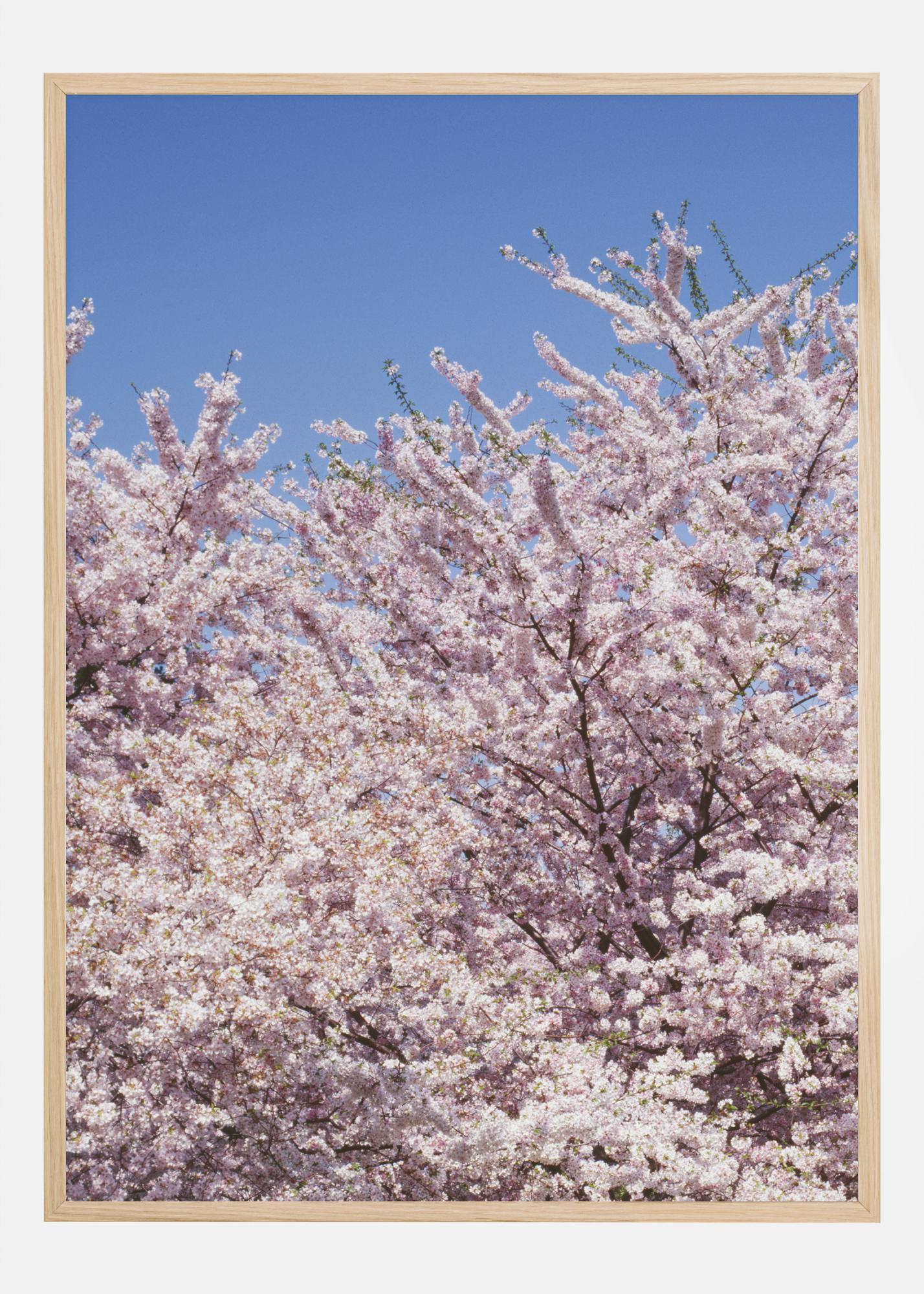 Μια αφίσα φύσης με φανταστικά δέντρα κερασιάς με λευκά άνθη ενάντια σε ένα ανοιχτό μπλε ουρανό. Τα λευκά άνθη γεμίζουν αυτή την εικόνα και δημιουργούν έντονη αντίθεση με τον ουρανό. Κρεμάστε αυτή την εικόνα και αφήστε το σπίτι σας να γεμίσει με μια αίσθηση της φύσης όταν βλέπετε αυτό το έργο στον τοίχο σας.