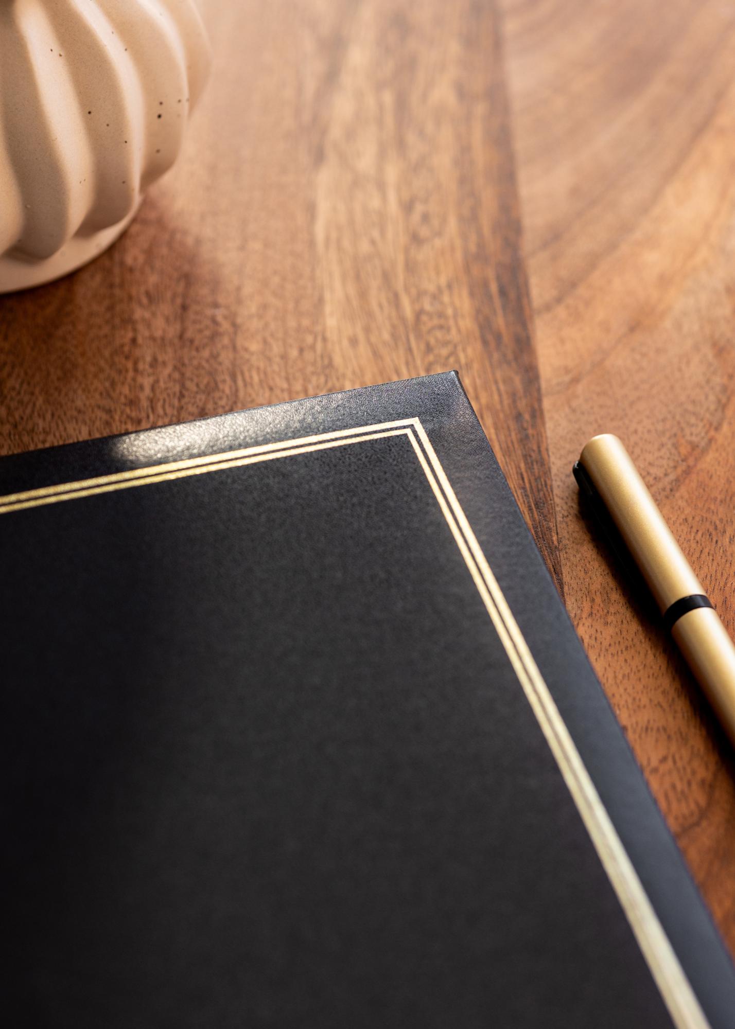 Classico Album Svart είναι η τέλεια επιλογή για εσάς που θέλετε να δημιουργήσετε ένα προσωπικό και κομψό άλμπουμ φωτογραφιών. Με τα κομψά εξώφυλλά του σε μαύρο και χρυσό, το άλμπουμ προσφέρει μια διαχρονική αίσθηση που ταιριάζει σε όλες τις περιστάσεις. Το άλμπουμ έχει διαστάσεις 32x34 cm και περιέχει 100 λευκές σελίδες, που αντιστοιχούν σε 50 φύλλα, όπου μπορείτε να τοποθετήσετε τις αγαπημένες σας φωτογραφίες.