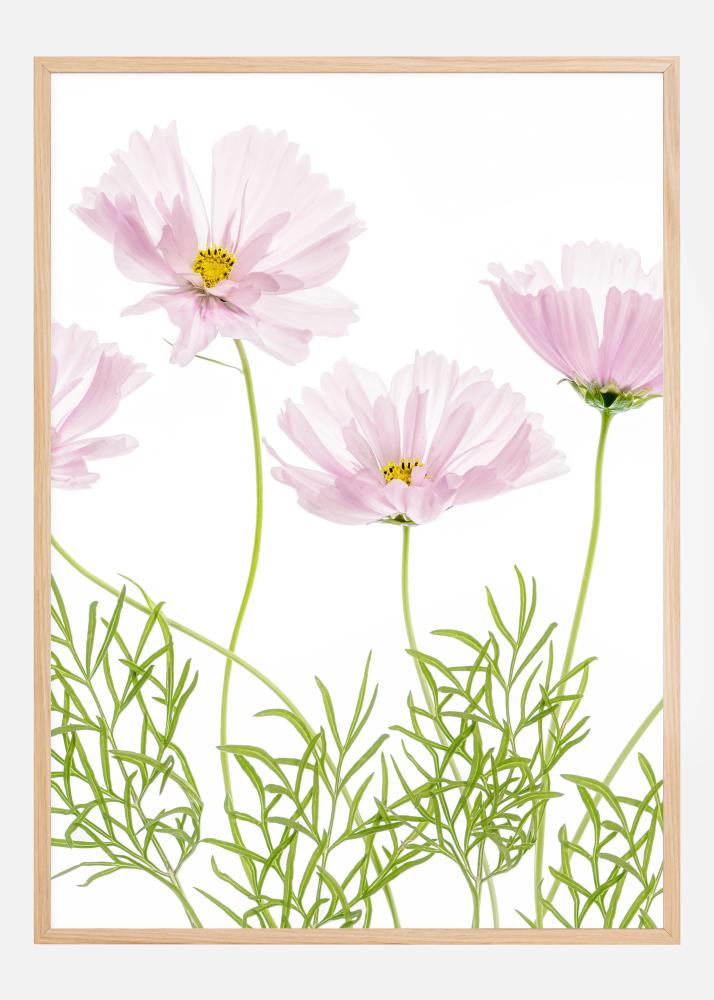 Μια αφίσα σε στυλ εκτύπωσης με ροζ εφέ. Κάθε λουλούδι είναι απαλό μοβ-ροζ με κίτρινο φως στο κέντρο. Τα απλά πράσινα φύλλα οδηγούν το βλέμμα προς αυτά τα χορευτικά λουλούδια. Αποκτήστε μια παιχνιδιάρικη αίσθηση με αυτή τη φανταστική εκτύπωση στο σπίτι σας.