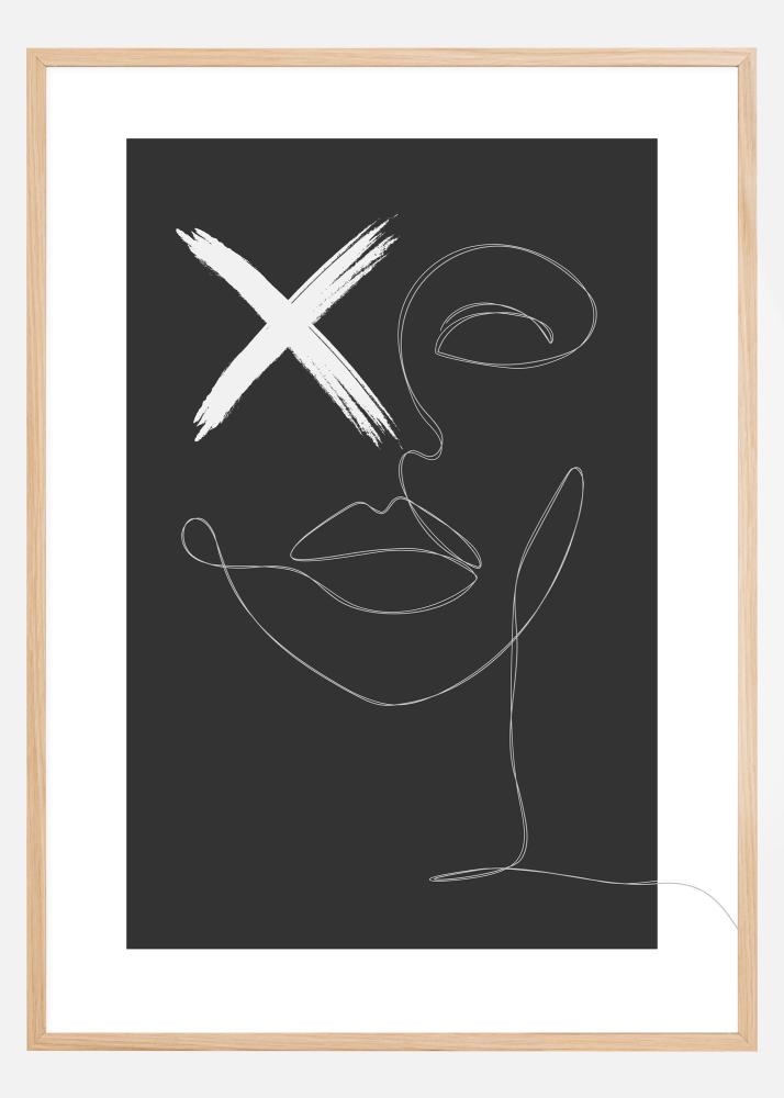 Μια αφηρημένη αφίσα με ένα πρόσωπο σχεδιασμένο με λεπτές λευκές γραμμές σε μαύρο φόντο. Οι λευκές γραμμές είναι όλες ενωμένες για να δημιουργήσουν το πρόσωπο με μια ομαλή κίνηση. Εκεί όπου θα έπρεπε να είναι ένα μάτι, υπάρχει ένας δραματικός λευκός σταυρός. Τι σημαίνει αυτό; Κρεμάστε αυτό το έργο κεντρικά για μια καλλιτεχνική συζήτηση στο σπίτι.