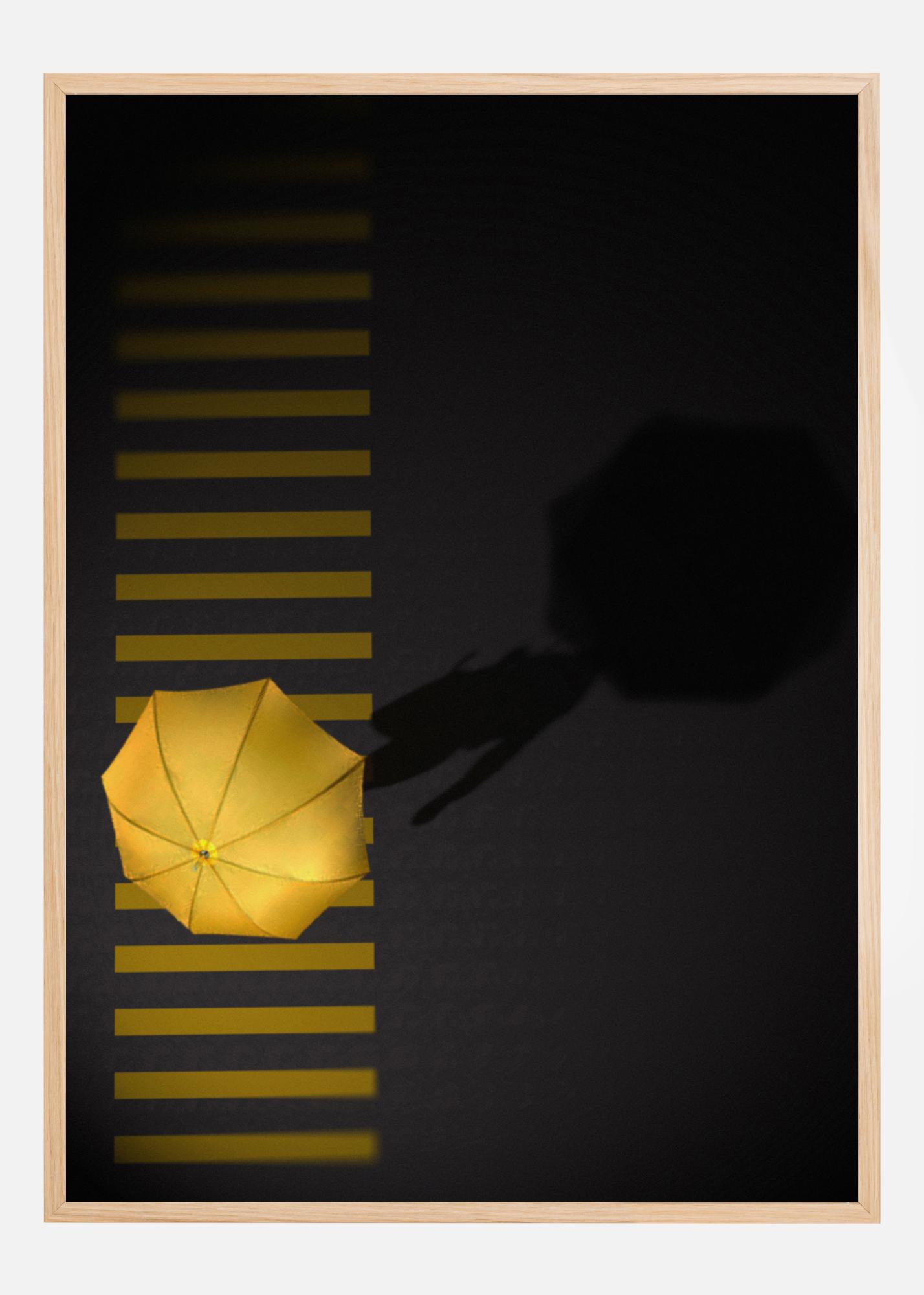 Μια εναέρια φωτογραφία ενός πεζού με μια κίτρινη ομπρέλα σε μια διάβαση πεζών. Οι ανοιχτόχρωμες κίτρινες γραμμές της διάβασης πεζών χωρίζονται από την έντονα κίτρινη ομπρέλα. Η σκιά του πεζού προσδίδει επιπλέον δραματικότητα στην εικόνα και καθιστά το έργο μια τέλεια λεπτομέρεια εσωτερικής διακόσμησης.