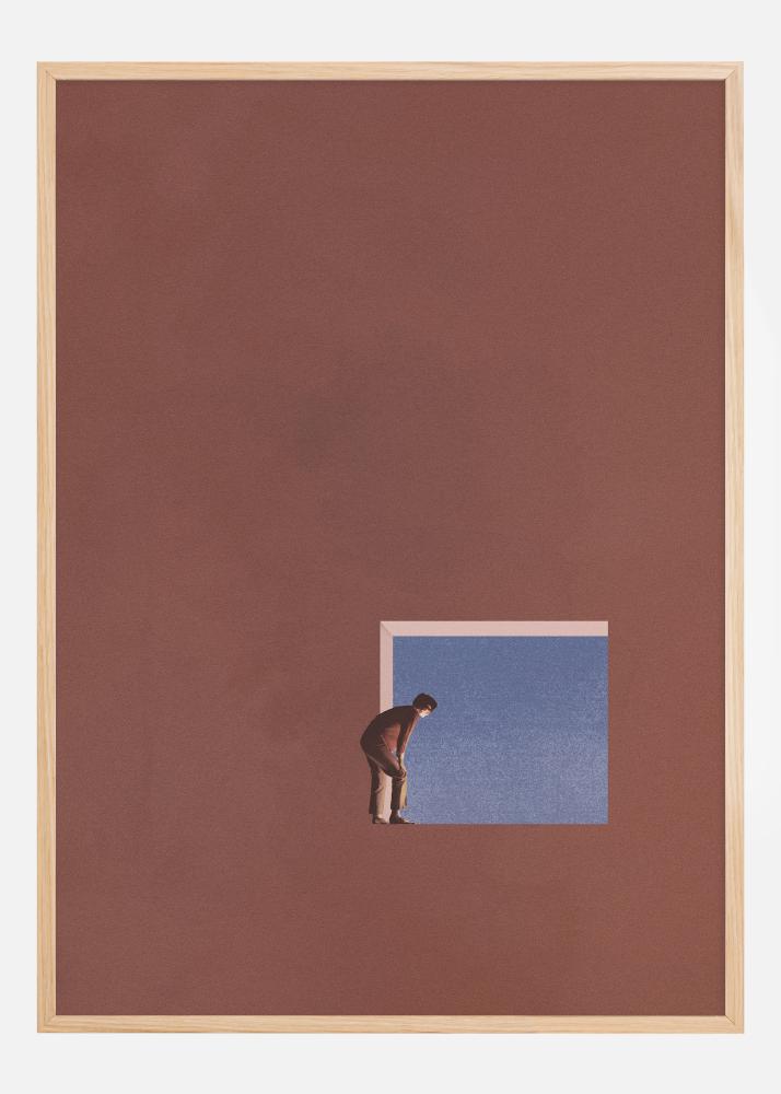Αυτή η υποβλητική και εννοιολογική αφίσα αποτυπώνει ένα άτομο που γέρνει προς τα εμπρός, κοιτάζοντας μέσα από ένα τετράγωνο άνοιγμα σε έναν μπλε χώρο που σπάει την περιβάλλουσα καφέ επιφάνεια. Αυτή η απλή αλλά ισχυρή εικόνα μπορεί να θεωρηθεί ως μια αναπαράσταση της περιέργειας και της ανθρώπινης επιθυμίας να εξερευνήσουμε και να ανακαλύψουμε το άγνωστο. Θα μπορούσε επίσης να είναι μια μεταφορά για το παράθυρο των ευκαιριών και τη σημασία να πάρουμε την ευκαιρία όταν αυτή εμφανίζεται.