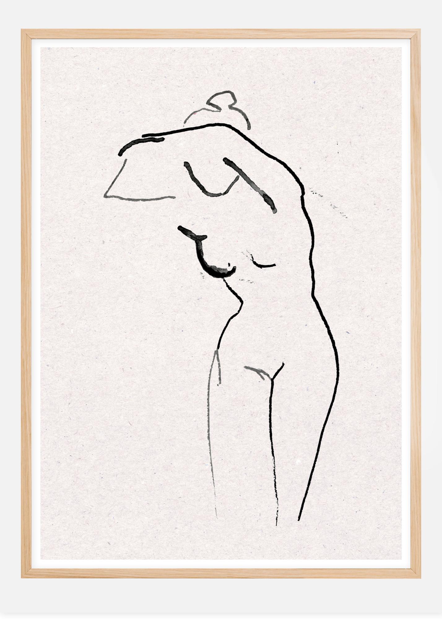 Μια αφηρημένη αφίσα τέχνης σε ακουαρέλα που δημιουργήθηκε από την Cora Konst och Illustration. Εδώ παίρνει μορφή μια γυναίκα με λεπτές μαύρες γραμμές σε ένα ελαφρύ γκρι φόντο. Το ευαίσθητο μοτίβο περιβάλλεται στη συνέχεια από ένα λίγο πιο λεπτό λευκό passepartout.