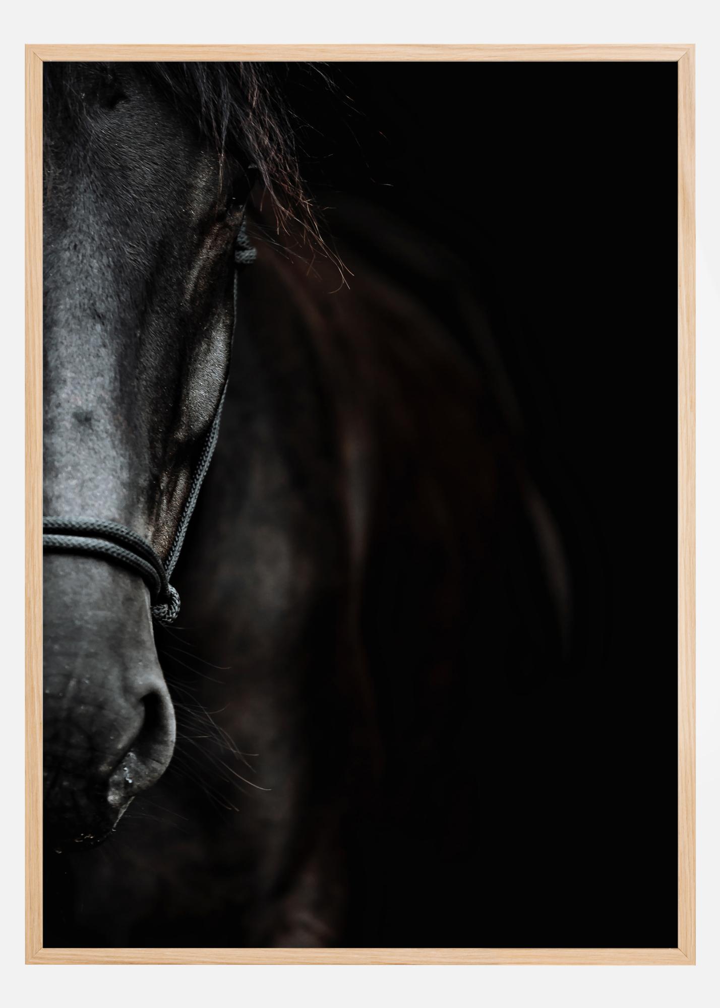 Μια φωτογραφική αφίσα για τους λάτρεις των αλόγων! Εδώ είναι ένα σκούρο άλογο φωτογραφημένο από μπροστά σε σκούρο φόντο. Το πρόσωπο είναι όμορφα φωτισμένο ενώ τα πίσω μέρη του αλόγου συγχωνεύονται με το φόντο. Συμπληρώστε ευχαρίστως με κάτι από την ευρεία γκάμα από κορνίζες μας.