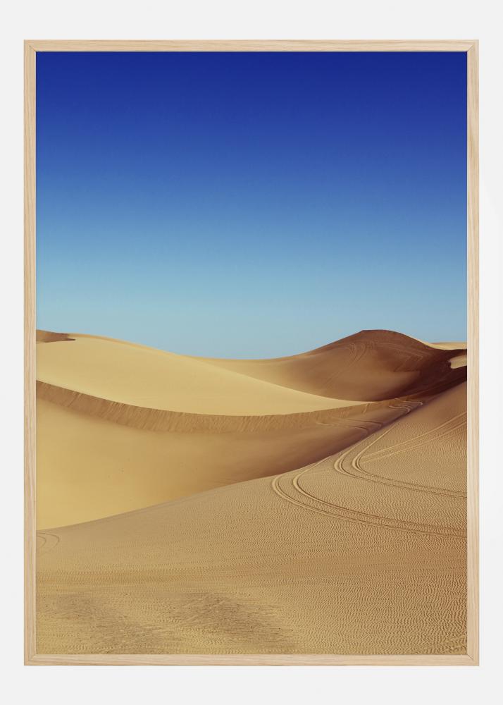 Μια ζωντανή αφίσα με καταπληκτικές κίτρινες αμμόλοφους με δύο τροχιές καταστρώματος σε μια στροφή. Οι φωτεινοί αμμόλοφοι ενισχύονται από την συναρπαστική μπλε απόχρωση του ουρανού. Χαθείτε στη μεγάλη έκταση με αυτό το καταπληκτικό έργο στον τοίχο σας.