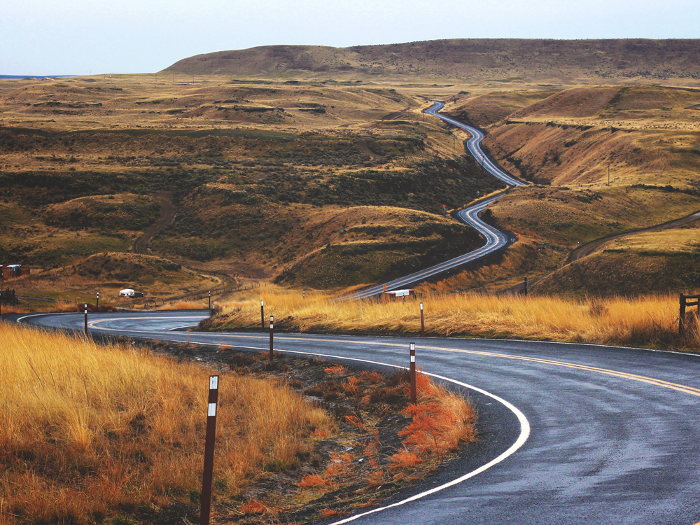 Αφίσα με έναν δρόμο από άσφαλτο που στροβιλίζεται μέσα από ένα κατάξερο στέπας τοπία. Οι κίτρινες καφέ αποχρώσεις του γρασιδιού ενάντια στην κρύα επιφάνεια της ασφάλτου που διασχίζει το ανοιχτό τοπίο κάνουν το βλέμμα να ελκύεται προς την εικόνα και να ακολουθεί τον δρόμο. Η αφίσα ταιριάζει καλά σε μια μινιμαλιστική κορνίζα όπου το θέμα μπορεί να αναδειχθεί και μπορεί να συνδυαστεί με άλλους πίνακες σε ένα θέμα.