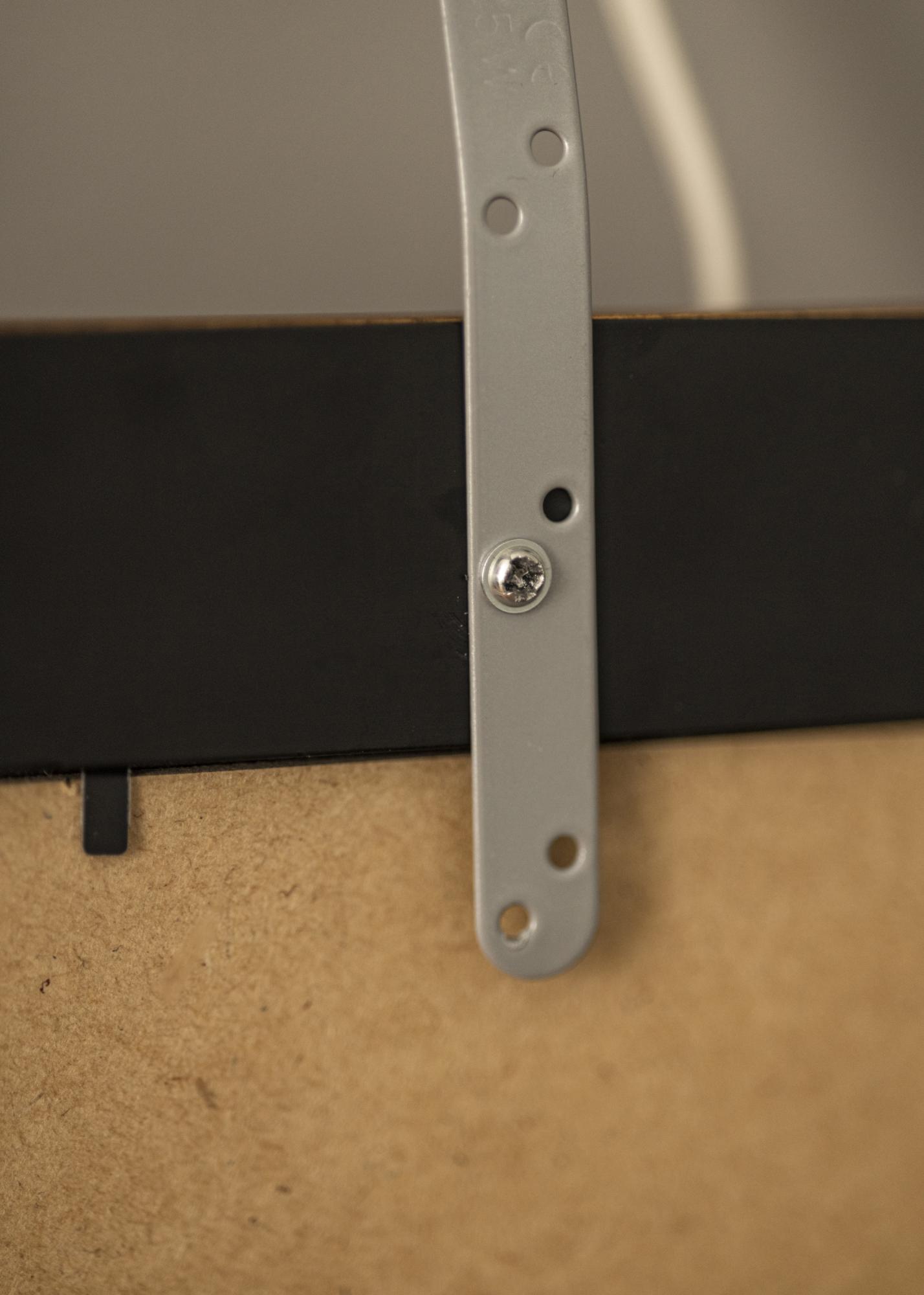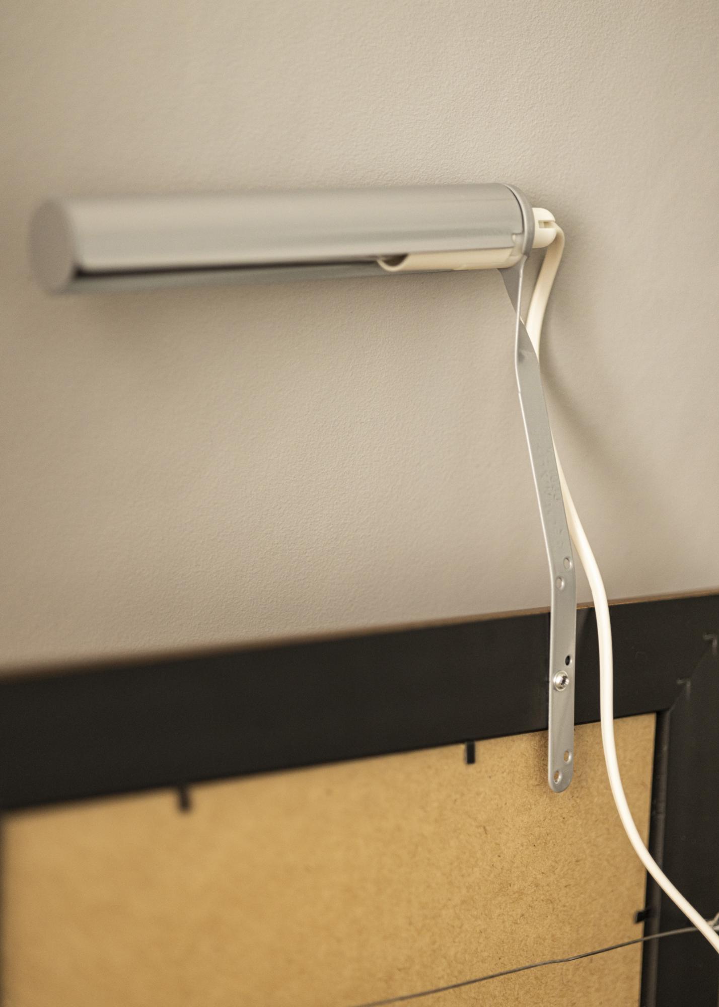 Κανονικά στερεώνετε το φωτισμό πίνακα στο πίσω μέρος της κορνίζας, το μειονέκτημα αυτού είναι ότι χρειάζεται μια ξύλινη κορνίζα (ορισμένες σύνθετες κορνίζες ταιριάζουν επίσης) που έχει ένα φαρδύ προφίλ για να είναι δυνατή η βίδωση στην κορνίζα. Με το δικό μας εξάρτημα τοίχου δεν χρειάζεται να ανησυχείτε για αυτό και απλώς τοποθετείτε το φωτισμό του πίνακα απευθείας στον τοίχο πίσω από τον πίνακα.