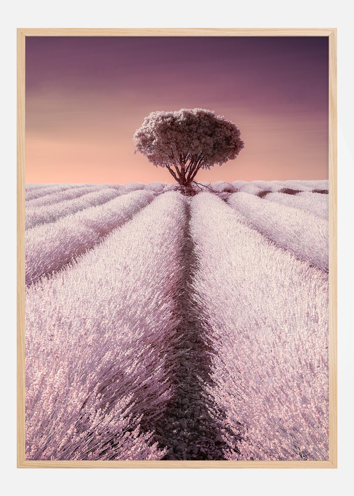 Περάστε σε έναν ονειρικό κόσμο χρώματος και φαντασίας με την αποκλειστική μας αφίσα. Αυτή η εκτύπωση αποπνέει μια μαγική αίσθηση με τον ουρανό σε παστέλ αποχρώσεις που μεταβαίνει από ζεστά ροζ σε χαλαρωτικές μοβ αποχρώσεις. Στο κέντρο της σύνθεσης ξεχωρίζει ένα μοναχικό δέντρο, μεγαλοπρεπώς τοποθετημένο κατά μήκος της καθαρής γραμμής του μονοπατιού σε ένα πεδίο λεβάντας. Αυτή η αφίσα είναι μια οπτική γιορτή για τα μάτια και θα ήταν ιδανική ως κεντρική εικόνα σε κάθε δωμάτιο, προσφέροντας μια νότα ηρεμίας και ομορφιάς.