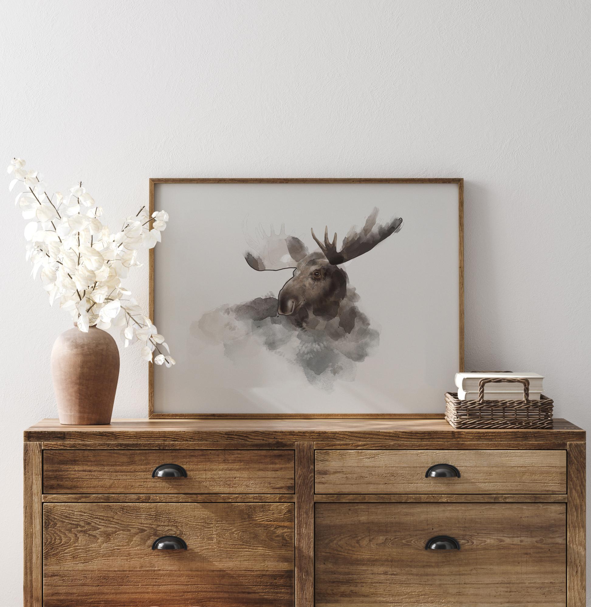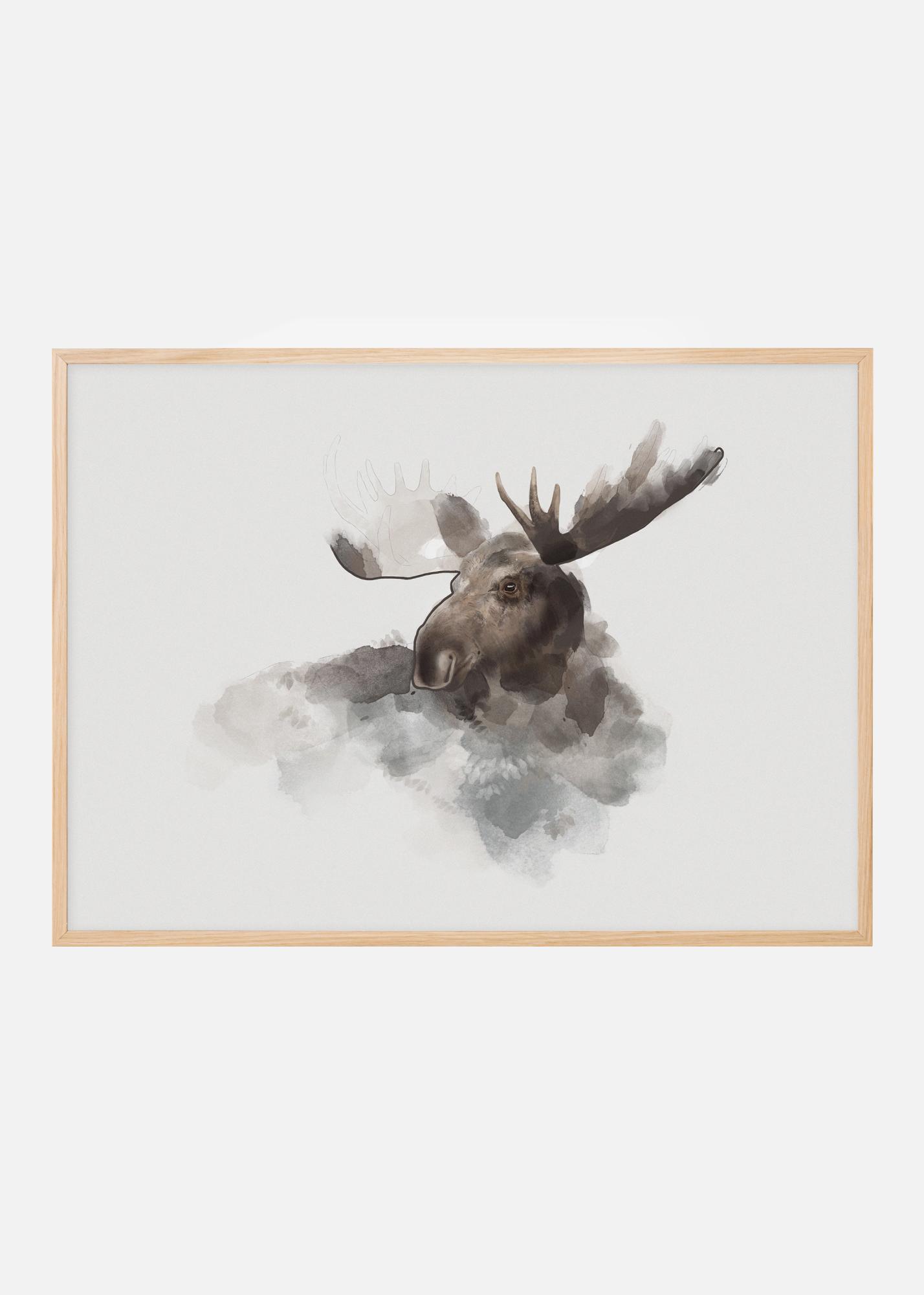 Μια αφίσα ακουαρέλας με το κεφάλι ενός άλκη. Οι απαλές πινελιές χτίζουν σταδιακά το πρόσωπο του άλκη, τα κέρατά του δεν έχουν ακόμη πλήρως σχηματιστεί. Κρεμάστε αυτή την εικόνα που μοιάζει με σύννεφο σε έναν ουδέτερο τοίχο για να διατηρήσετε την απαλότητα και την κομψότητα στο σπίτι σας.