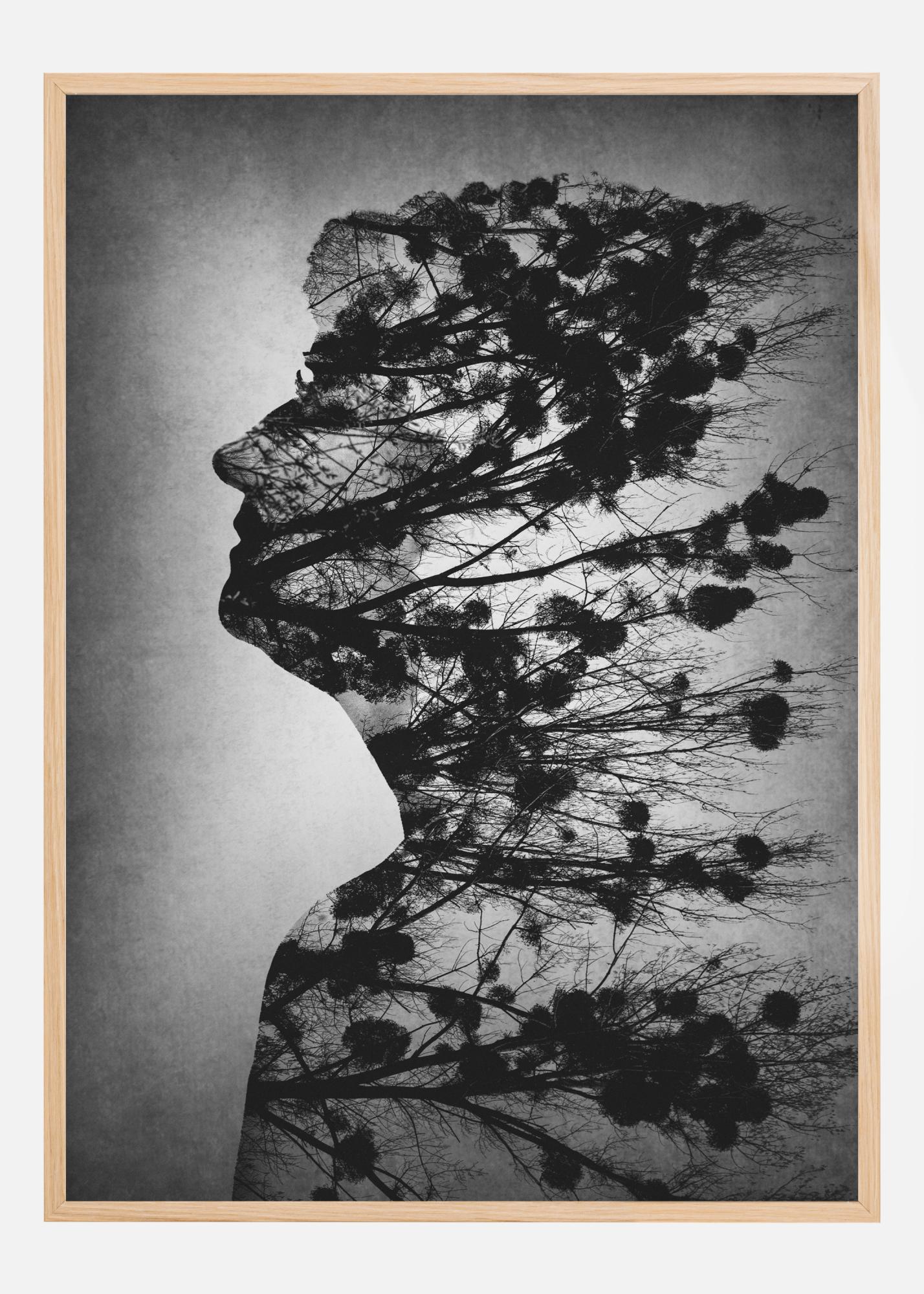 Μια αφηρημένη αφίσα με το πρόσωπο μιας γυναίκας, δημιουργημένη χρησιμοποιώντας διάφορα φύλλα και κλαδιά. Σε φανταστικό ασπρόμαυρο, αυτή η δραματική στάση δημιουργεί την αίσθηση ότι ο άνεμος έχει φυσήξει αυτά τα φύλλα πάνω από το πρόσωπό της. Ισχυρός φωτισμός από το πίσω μέρος αναδεικνύει το προφίλ, που δίνει μια δυνατή, αλλά διαφανή αίσθηση.