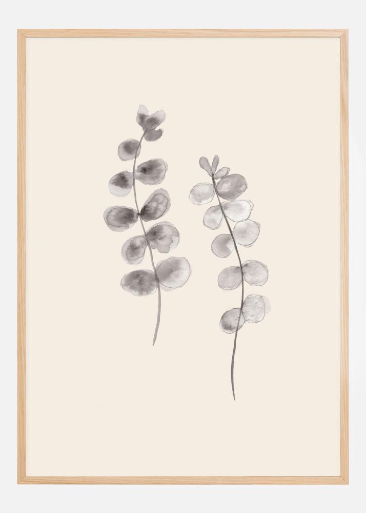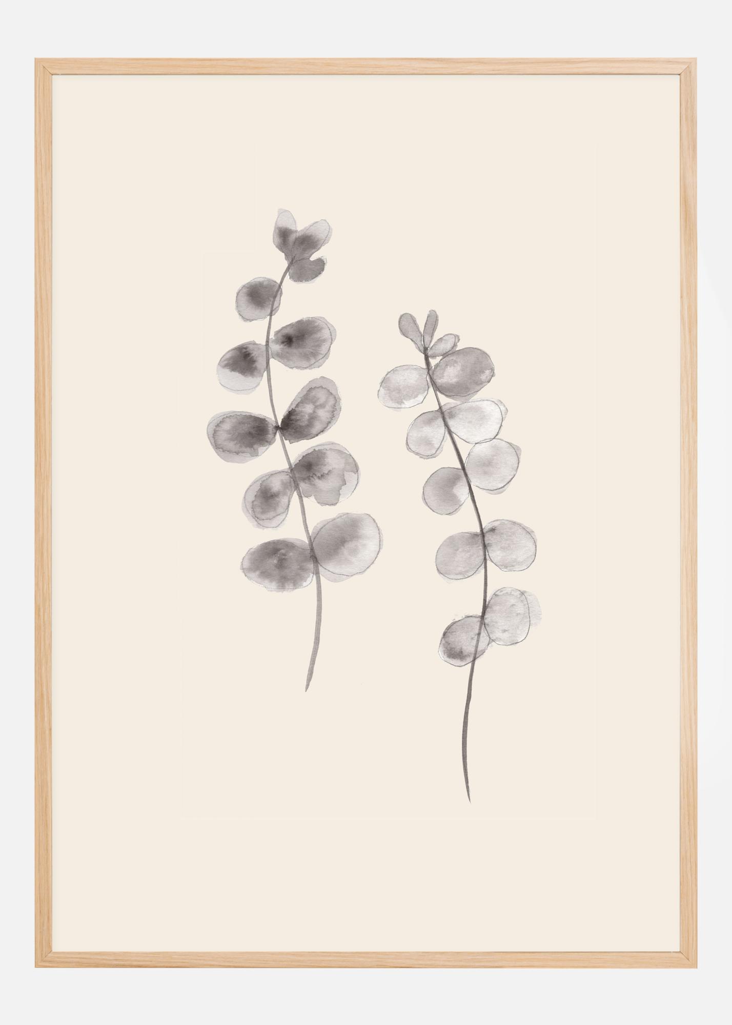 Μία βοτανική αφίσα με δύο γκρι κλαδιά με φύλλα ευκαλύπτου. Στη μέση ενός λευκού φόντου υπάρχουν δύο γκρίζα ζωγραφισμένα κλαδιά με φύλλα ευκαλύπτου. Λυγίζουν μαζί για να δημιουργήσουν μια απαλή καμπύλη που οδηγεί το βλέμμα επάνω μέσω της αφίσας. Κρεμάστε αυτόν τον καταπράσινο χορό στο σπίτι σας για μια χαλαρωτική αίσθηση.