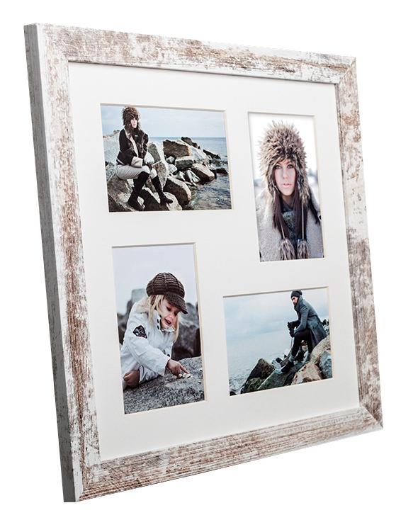 Κομψή κορνίζα vintage με ένα ευρύ προφίλ με φθαρμένη εμφάνιση σε λευκό και ξύλο. Προσφέρει μια επιπλέον διάσταση στις φωτογραφίες σου και ταιριάζει τέλεια όταν θέλεις μια αυθεντική αίσθηση vintage. Η κορνίζα κολάζ έχει χώρο για 4 φωτογραφίες 10x15 εκ.