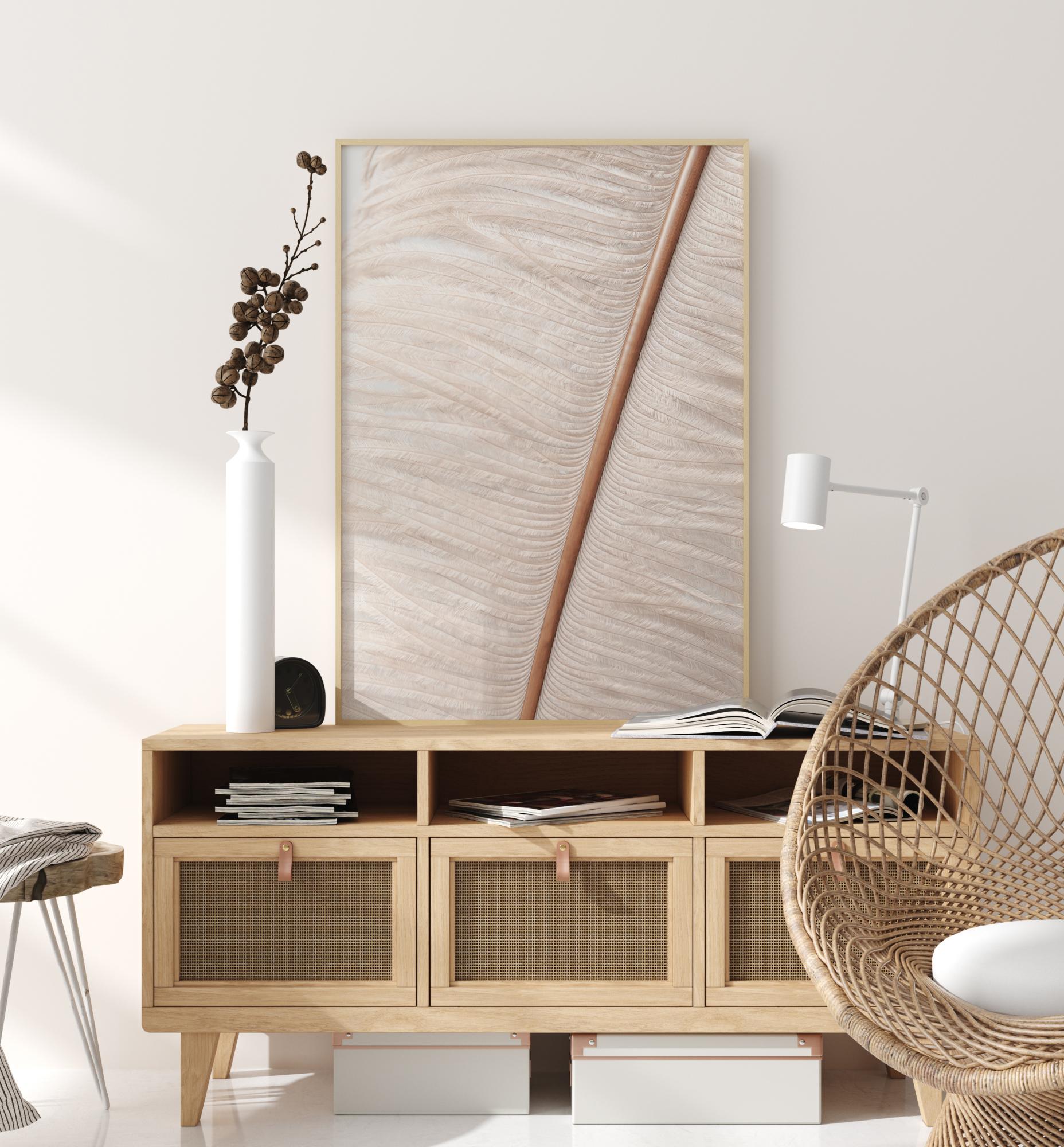 Μια μακροαφίσα με τον άξονα ενός φτερού στρουθοκαμήλου. Αυτή η μεγενθυμένη εικόνα δείχνει τον ισχυρό κεντρικό άξονα με όλα τα μικρά χνουδωτά λευκά ανεμολούλουδα που διακλαδίζονται. Οι λεπτομέρειες είναι εκπληκτικές σε αυτήν την απαλή, αλλά και εντυπωσιακή αφίσα. Ταιριάξτε σε έναν ουδέτερο τοίχο για ένα απαλό αποτέλεσμα.