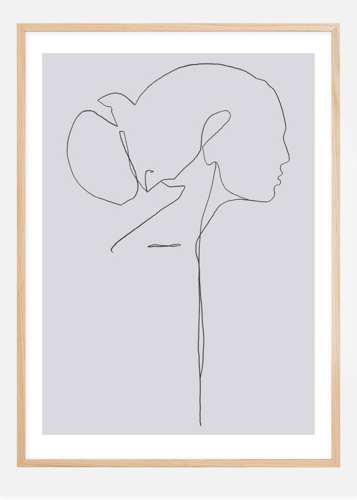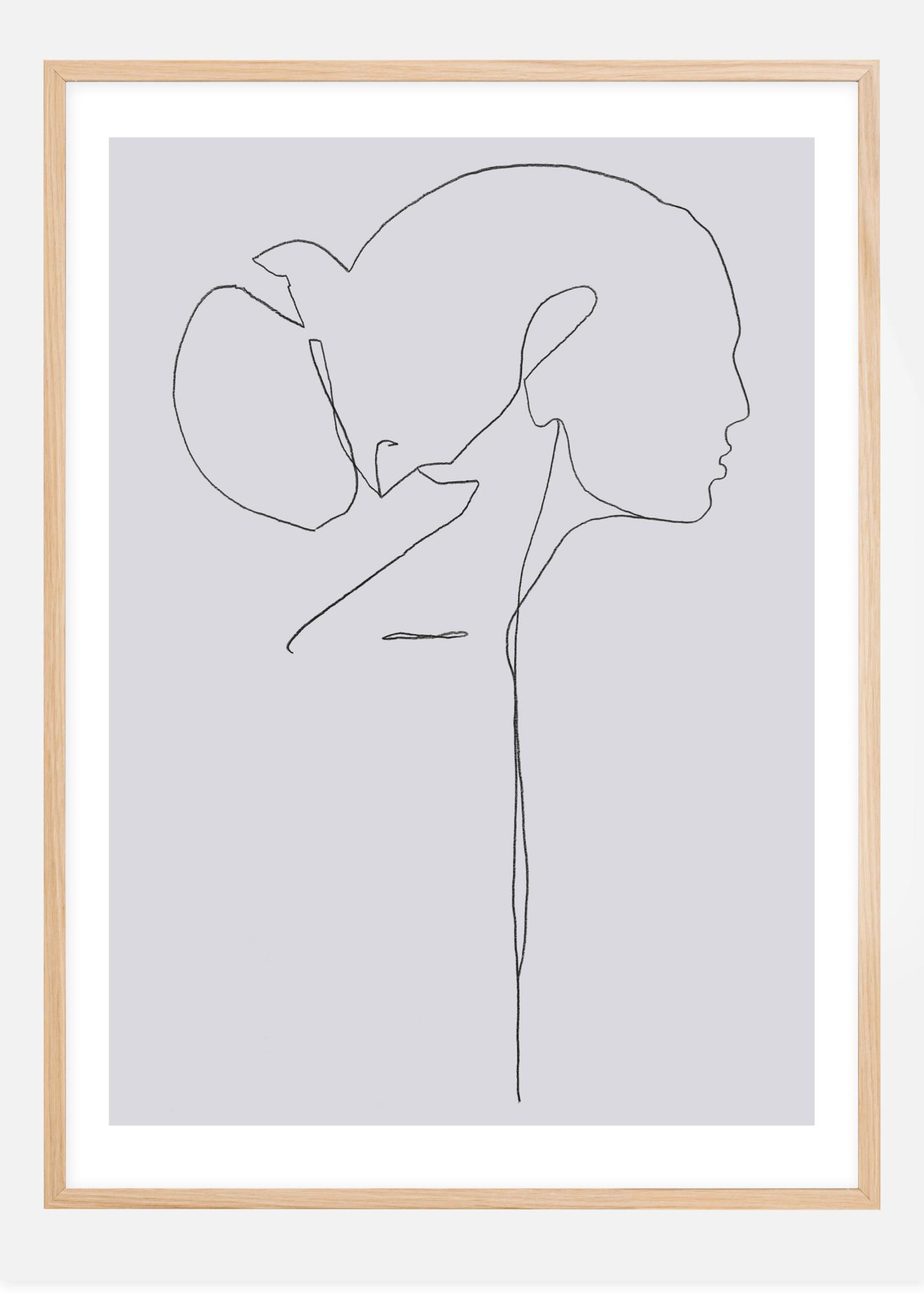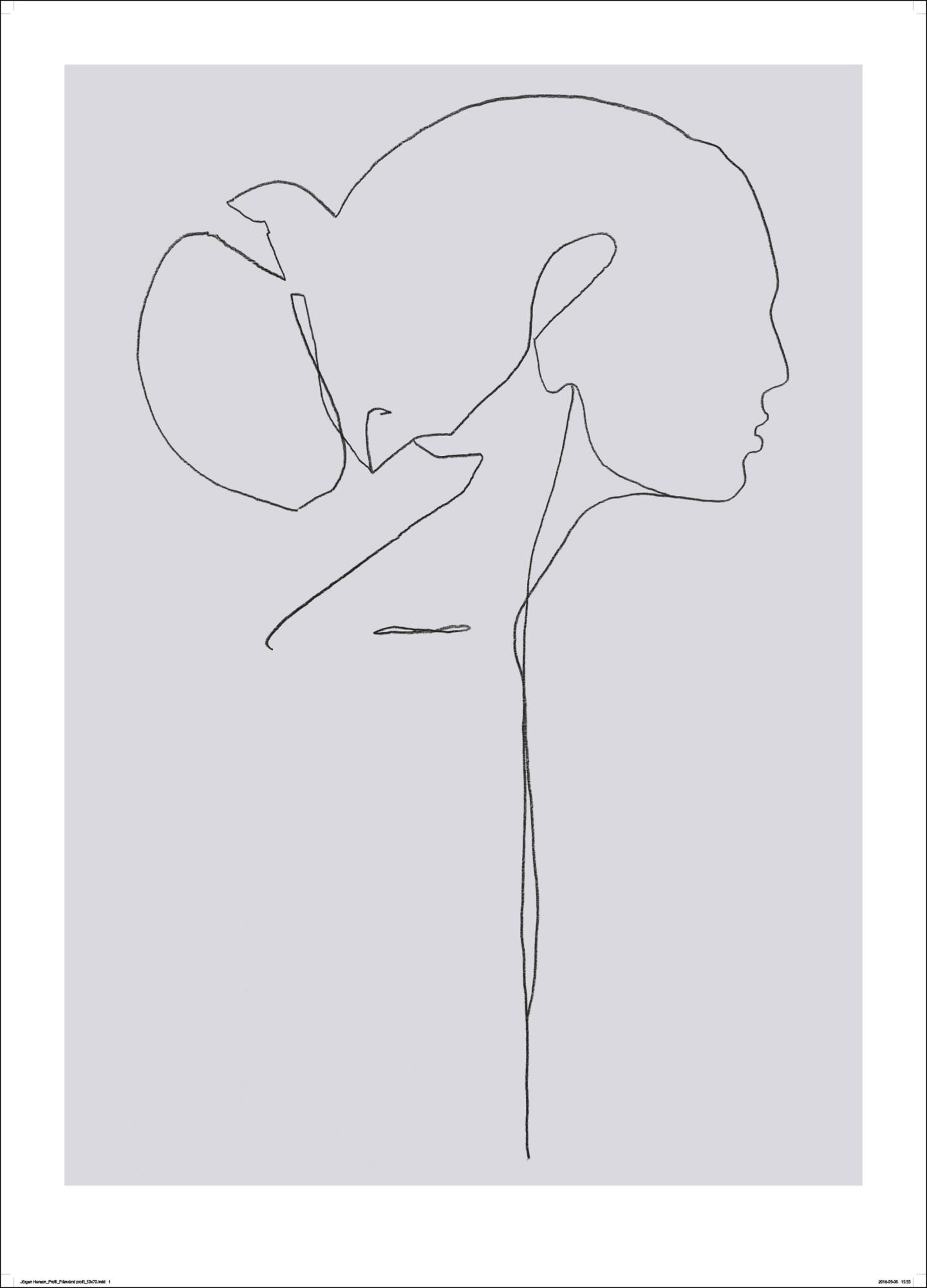 Όμορφη και κομψή γραμμική τέχνη με τη μορφή γυναίκας με μαζεμένα μαλλιά απεικονισμένη σε προφίλ, δημιουργημένη από τον Jörgen Hansson Art. Μια αφίσα που ταιριάζει καλά με τις άλλες Female Lines του Jörgen Hansson για ένα κολάζ στο ίδιο θέμα.