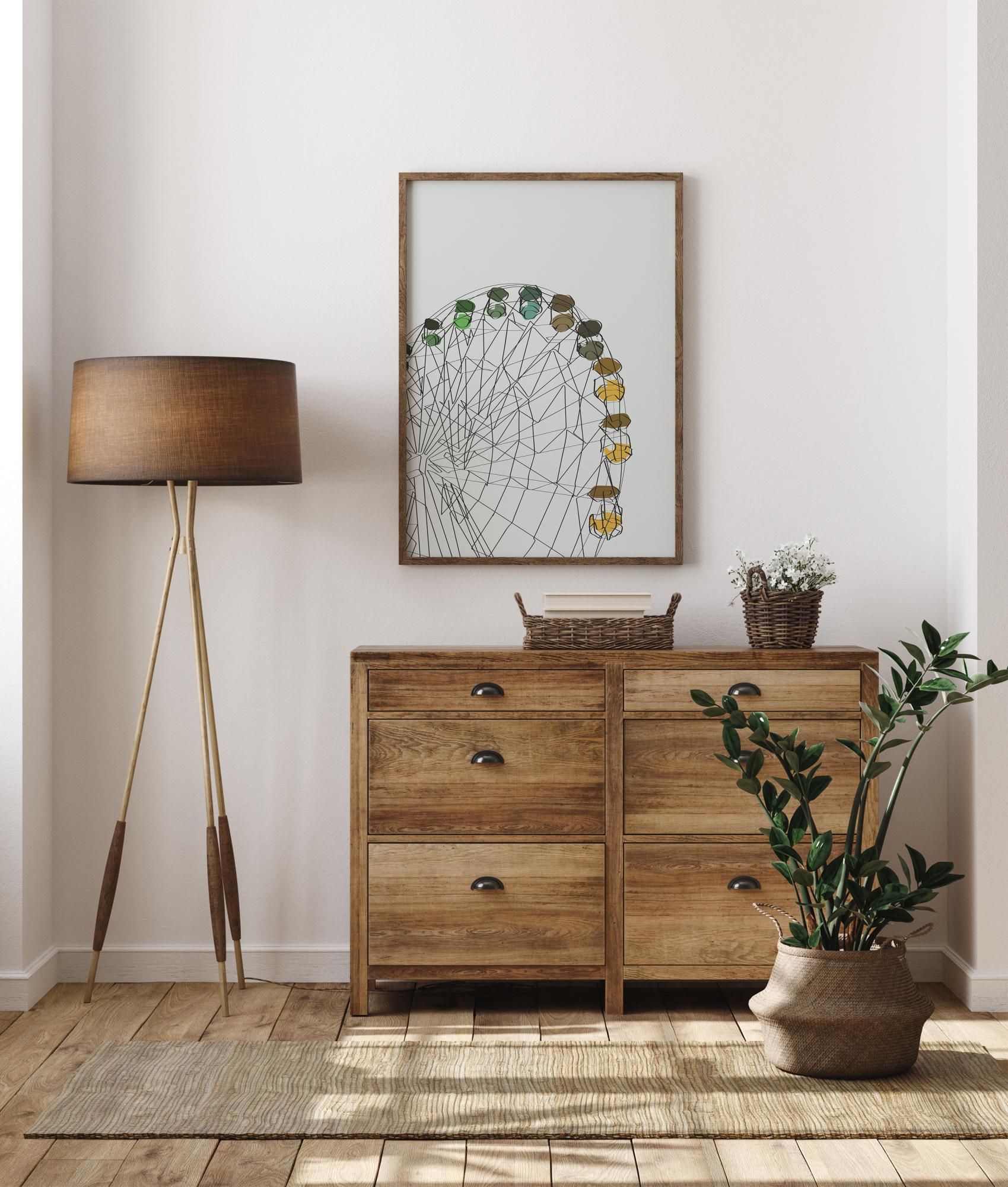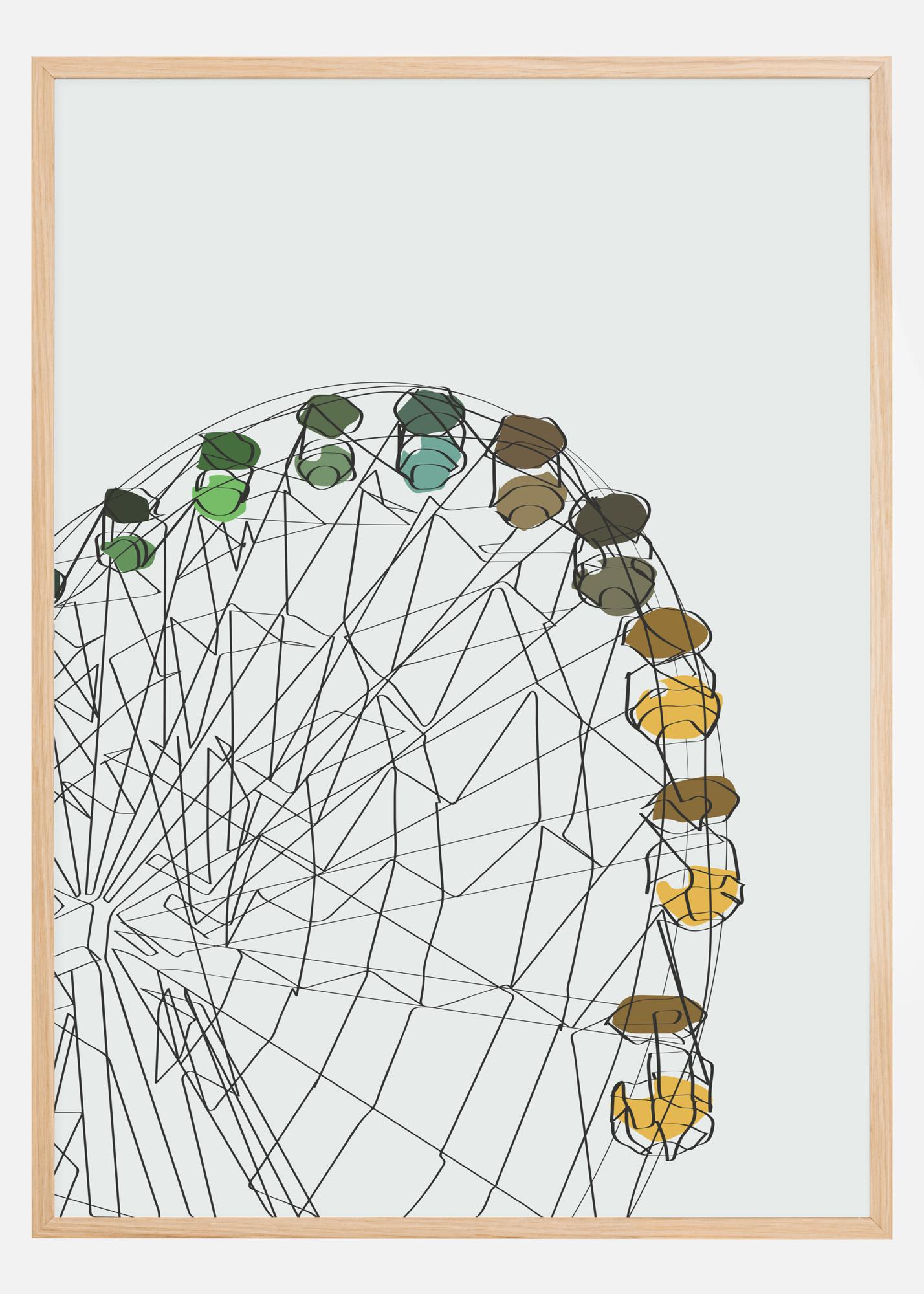 Γραφική τέχνη γραμμών ενός τροχού πανοραμάτων με καρότσια σε γήινους τόνους σε ανοιχτόχρωμο φόντο, δημιουργημένη από την Linn Westanbäck. Μια κομψή αφίσα που μεταφέρει ένα υπέροχο μείγμα ηρεμίας και περιπέτειας. Ρίξτε μια ματιά στη λοιπή συλλογή μας από την Linn Westanbäck για περισσότερα ενδιαφέροντα έργα.