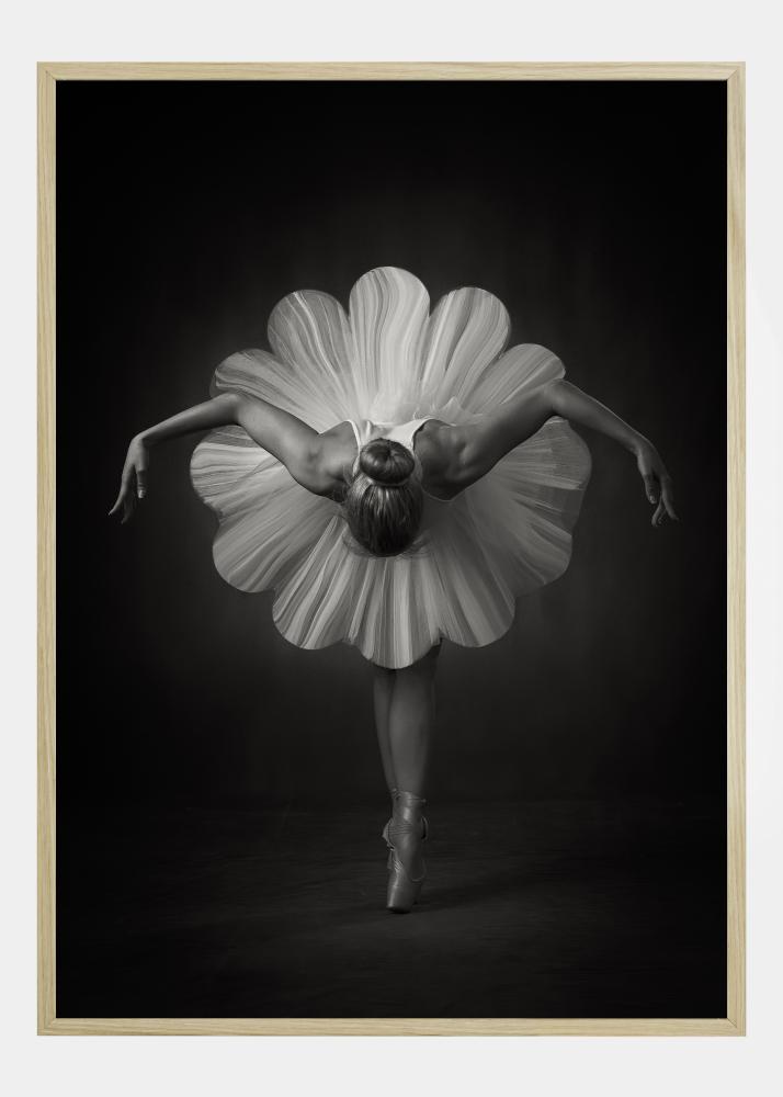 Μια κομψή αφίσα με μια μπαλαρίνα σε φούστα που μοιάζει με λουλούδι. Αυτή η όμορφη αφίσα θα προκαλέσει συζητήσεις σχετικά με τον αφηρημένο της χαρακτήρα και θα δώσει στο σπίτι σας μια αίσθηση θαυμασμού.