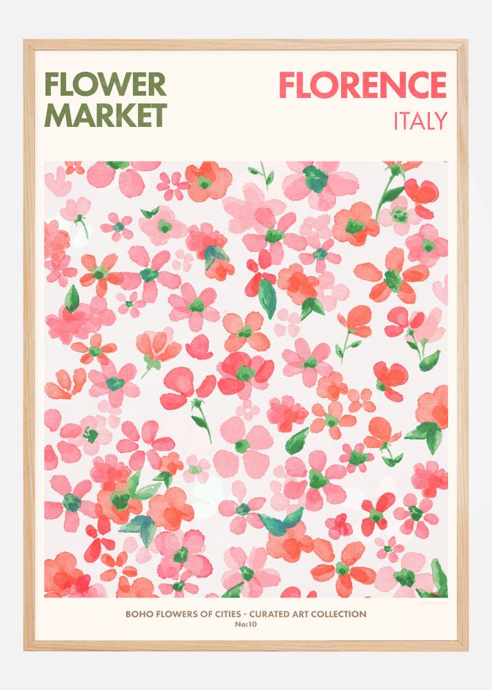 Εγκλωβίστε την ουσία μιας ανθίζουσας ιταλικής πόλης με αυτήν την όμορφη αφίσα από τη συλλογή τέχνης 'BOHO Flowers of Cities'. Αυτή η αφίσα αποτελεί φόρο τιμής στη Φλωρεντία, παρουσιάζοντας ένα πεδίο από λουλούδια ζωγραφισμένα με ακουαρέλα σε ποικίλες αποχρώσεις του ροζ και του κόκκινου, που φέρνουν στο μυαλό τις ζωηρές αγορές λουλουδιών στην καρδιά της Ιταλίας. Αυτό το ευαίσθητα εκτελεσμένο έργο τέχνης είναι τέλειο για να εισάγει μια αίσθηση ρομαντισμού και ομορφιάς της Φλωρεντίας σε οποιονδήποτε χώρο.