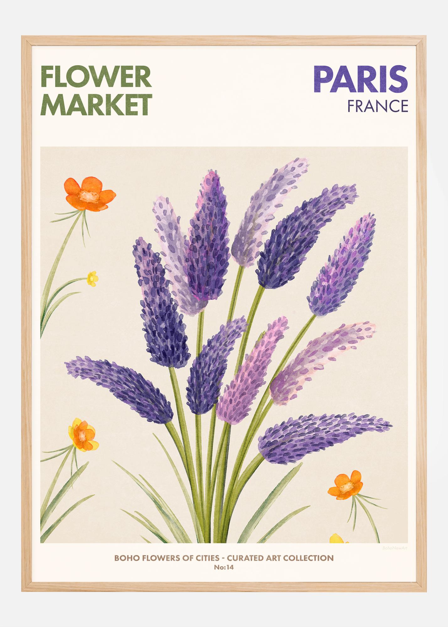 Ανακαλύψτε τη γοητεία και την κομψότητα του Παρισιού μέσα από αυτή την όμορφη αφίσα που αποτελεί κομμάτι της συλλογής μας 'BOHO Flowers of Cities' - Curated Art Collection. Αυτή η καλλιτεχνική απεικόνιση των γλυκών λεβάντας και ζωηρόχρωμων πορτοκαλοκόκκινων παπαρούνας αποτυπώνει την εμβληματική άνθηση που μπορεί να βιώσει κανείς στις ανθοκομικές αγορές της πόλης. Ιδανικό για όσους επιθυμούν να εισάγουν ένα κομμάτι της ρομαντικής ατμόσφαιρας της πόλης στο σπίτι τους, αυτή η αφίσα δίνει μία γαλλική φινέτσα που είναι τόσο κλασική όσο και διαχρονική.
