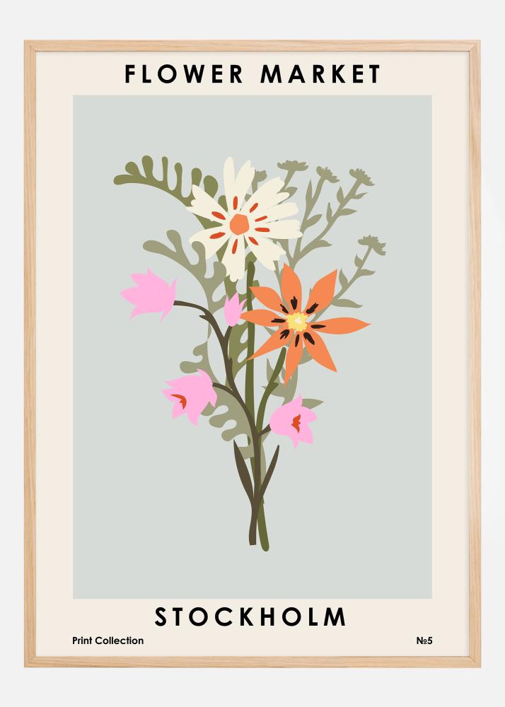 Αυτή η αφίσα απεικονίζει την ανθοκομική αγορά της Στοκχόλμης, με έναν αναζωογονητικό και φυσικό σχεδιασμό που αποτυπώνει την παλλόμενη ομορφιά και πρασινάδα της πόλης. Σε αυτό το εκτύπωμα, το παιχνίδι του φωτός ανάμεσα στα λουλούδια και το φύλλωμα αρμονίζει, δίνοντας ζωή στα ανθισμένα μοτίβα που απεικονίζονται σε αποχρώσεις του λευκού, ροζ και πορτοκαλί, πάνω σε ένα απαλό μπλε-γκρι φόντο. Είναι ένας φόρος τιμής στην αγάπη της σκανδιναβικής πρωτεύουσας στη φύση και την ικανότητά της να συνδυάζει την παράδοση με τον σύγχρονο σχεδιασμό.